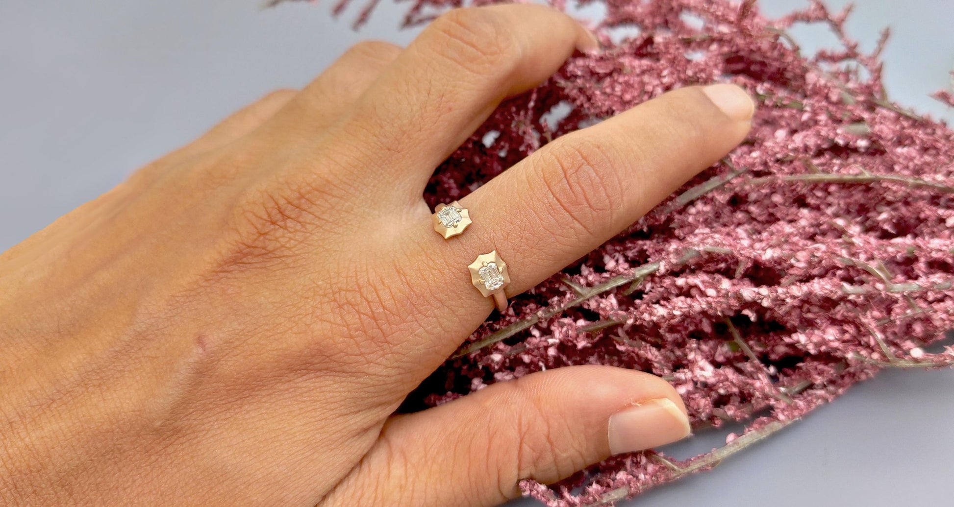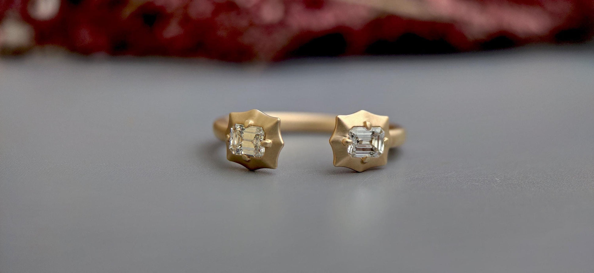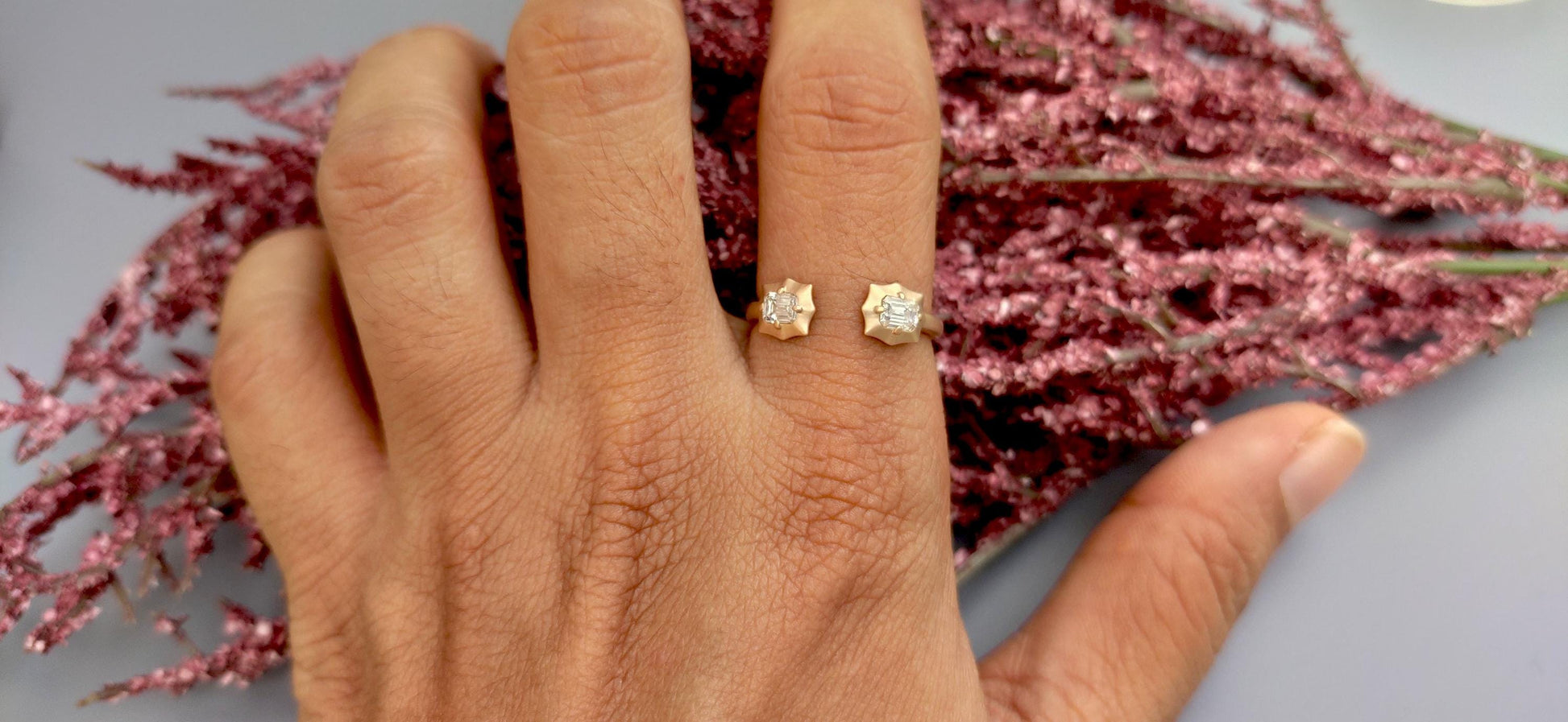 2 stone open end lab grown Emerald diamond ring, ring for women, ring for her, open end wedding band, gift for women, gift for wife