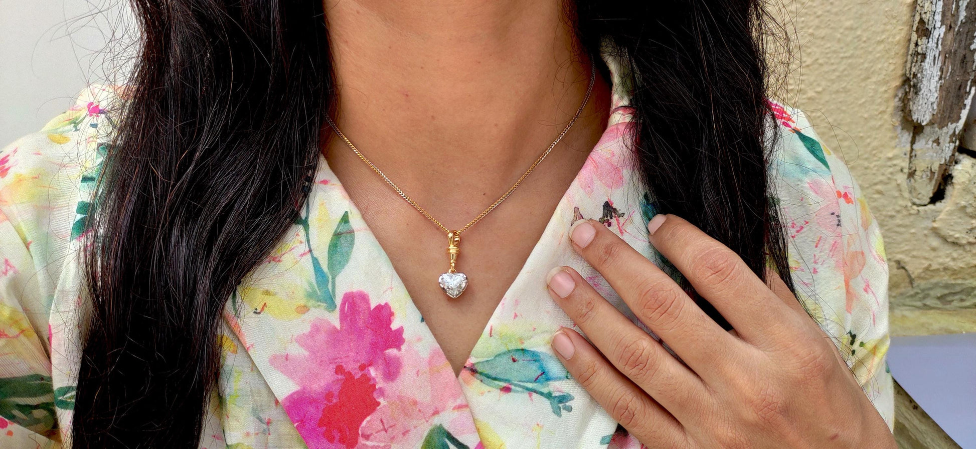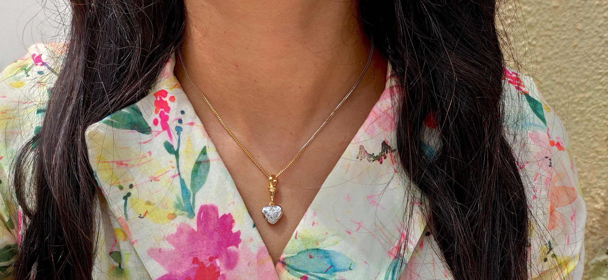 3 Ct Heart Cut Moissanite Collet set Georgian cut down set 2 toned Swivel Clasp Pendant, without chain