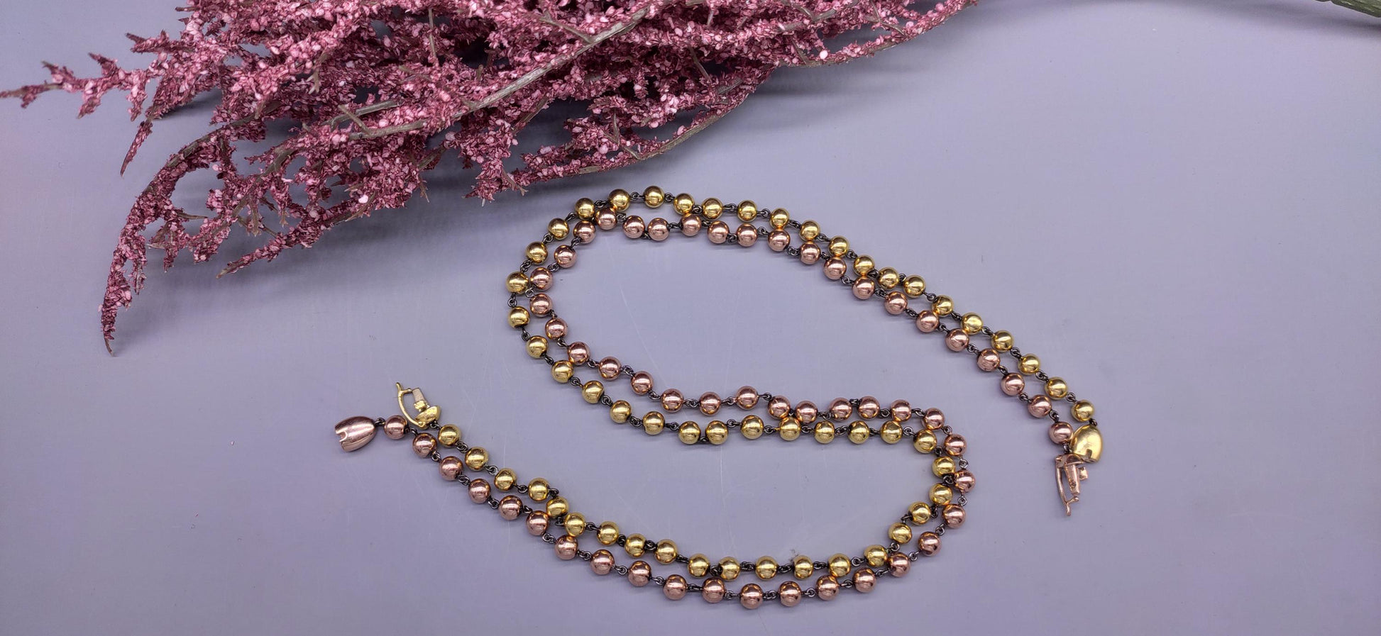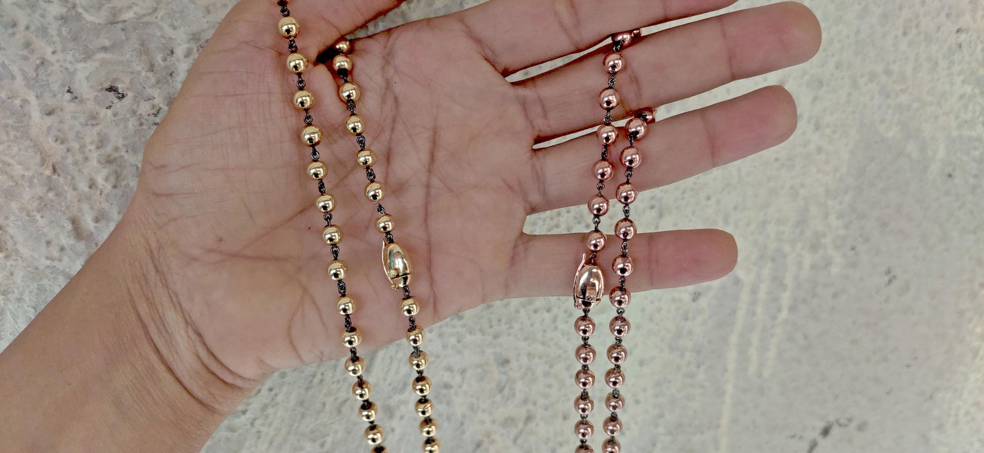 4.5 mm Ball n Chain Necklace with blackened gold links, Vintage Edwardian Antique necklace, Anniversary Gift, necklace for women