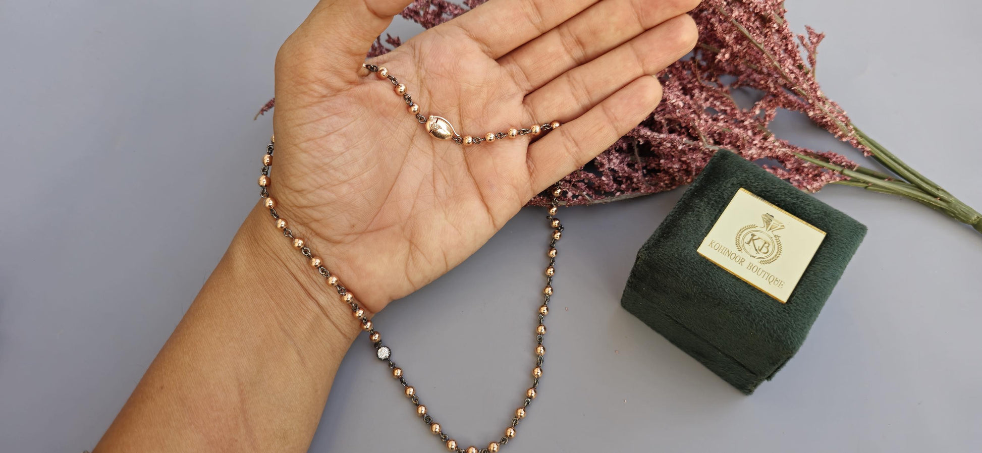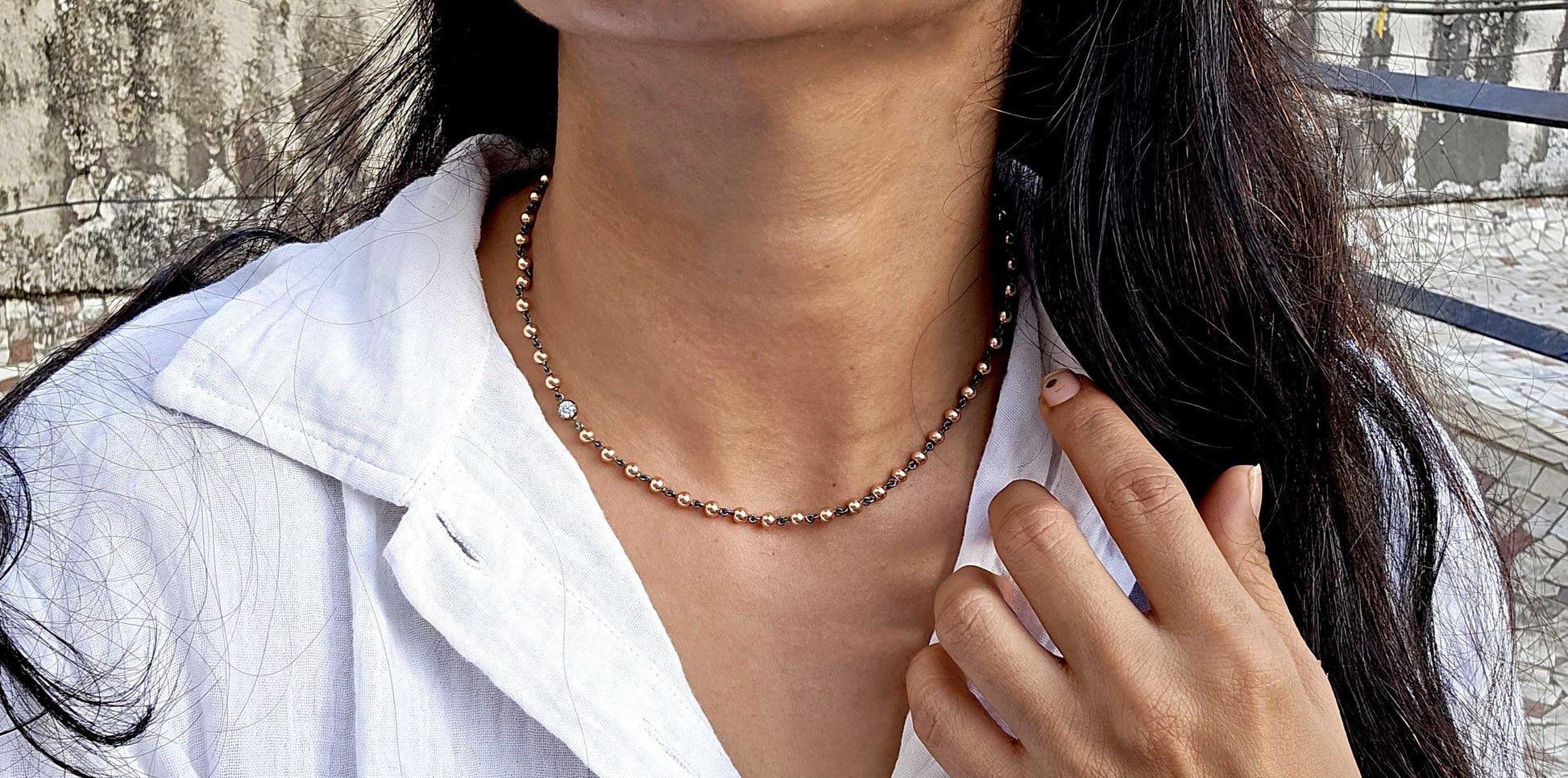 4 mm Ball n Chain Necklace with 1 moissanite blackened gold links, Vintage Edwardian Antique necklace, Anniversary Gift, necklace for women