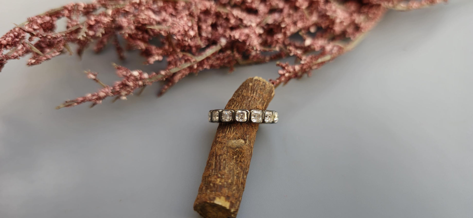 Asscher Cut Lab grown diamond Wedding band in blackened gold, Full\Half Eternity Ring, Stackable Ring, Georgian antique eternity ring