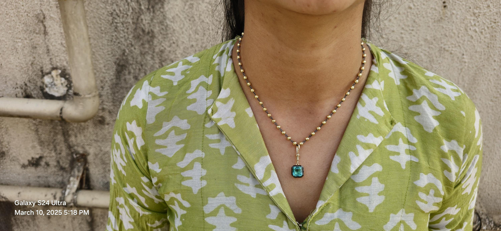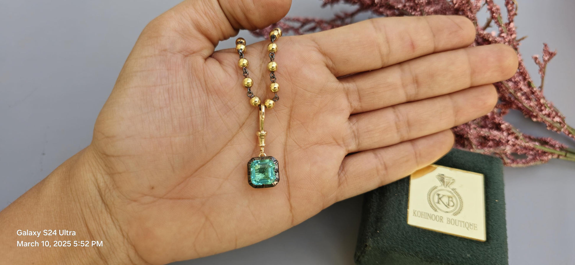 Asscher Cut Lab grown Pariba Tourmaline Pendant,Collet set Georgian cut down set Pendant, Wedding Pendant, Anniversary Gift
