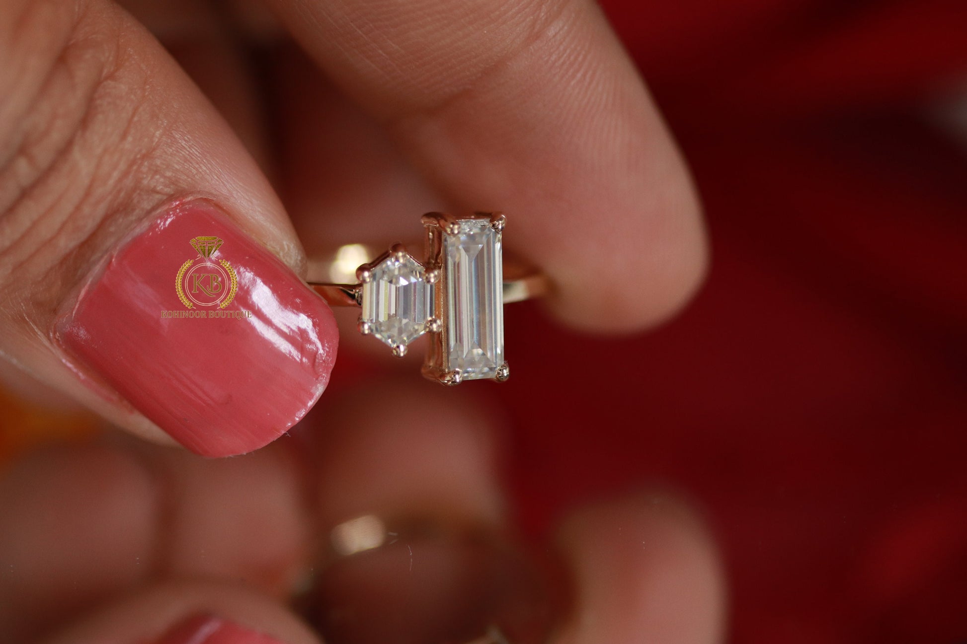 Baguette & hexagon moissanite Toi Et Moi two stone Engagement ring, wedding\promise\proposal ring, gift for her