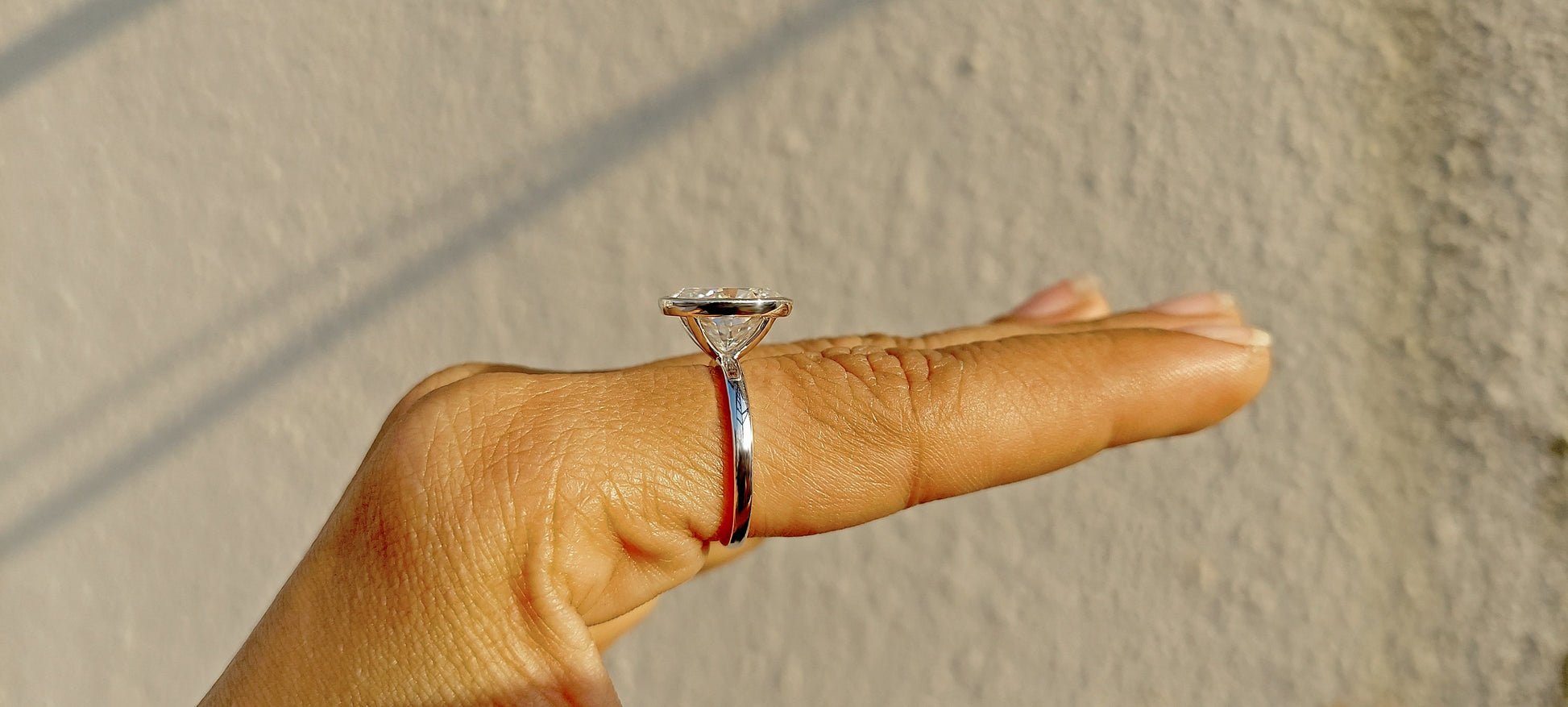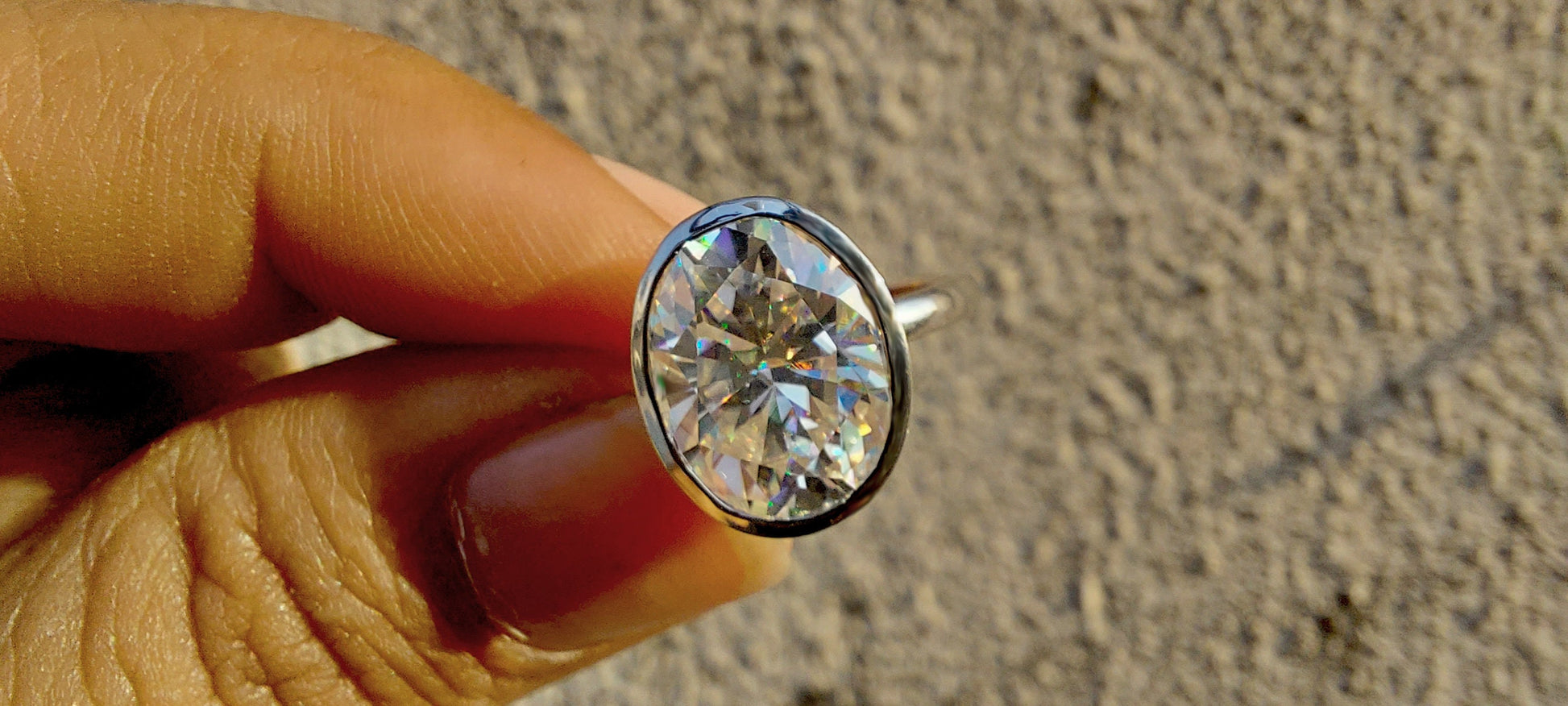Got questions or concerns? Just send us a message — we're here to help!Bezel set crushed ice oval Moissanite Solitaire Engagement ring, Ring for her, Anniversary gift for wife, Mother ring, statement ring