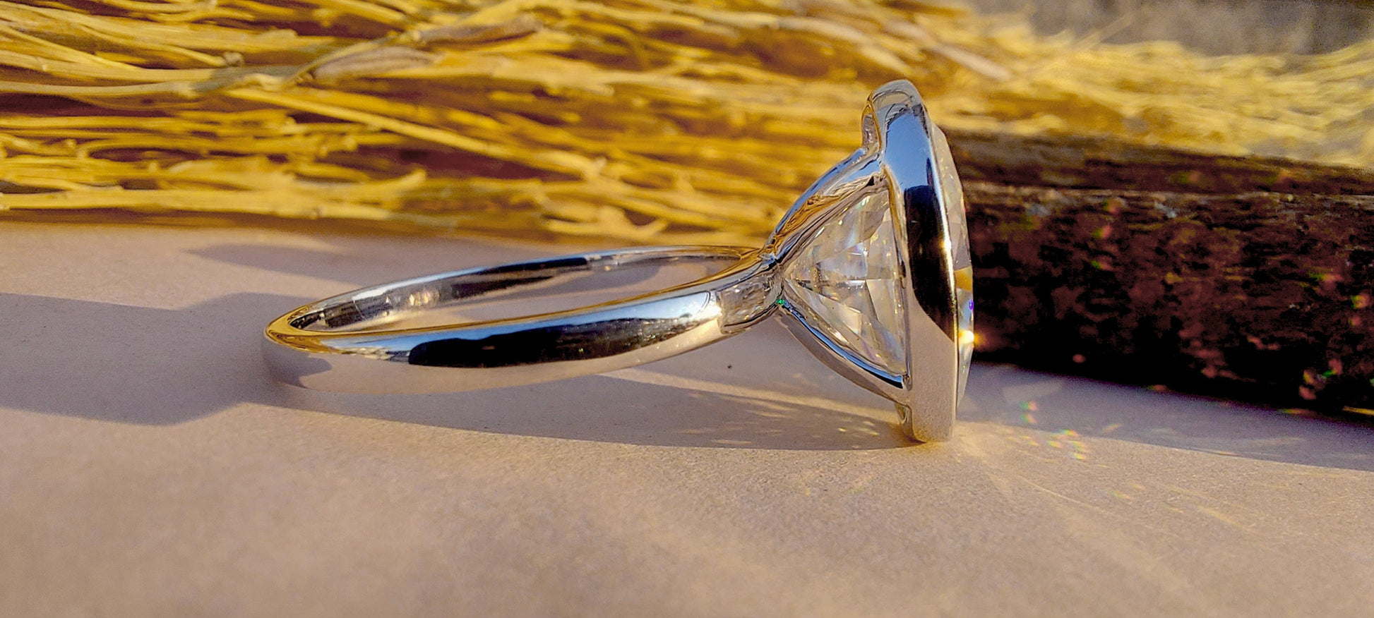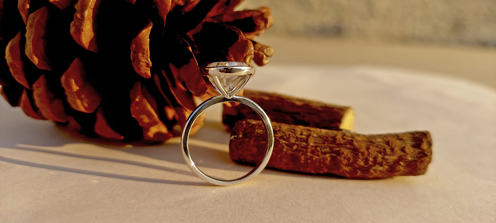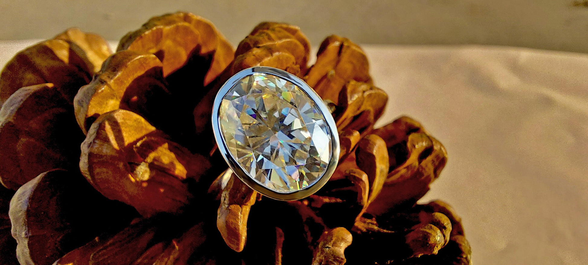 At Kohinoor Boutique, you’ll find Moissanite, which is less expensive, shinier, prettier, and less guilt inducing than diamonds.