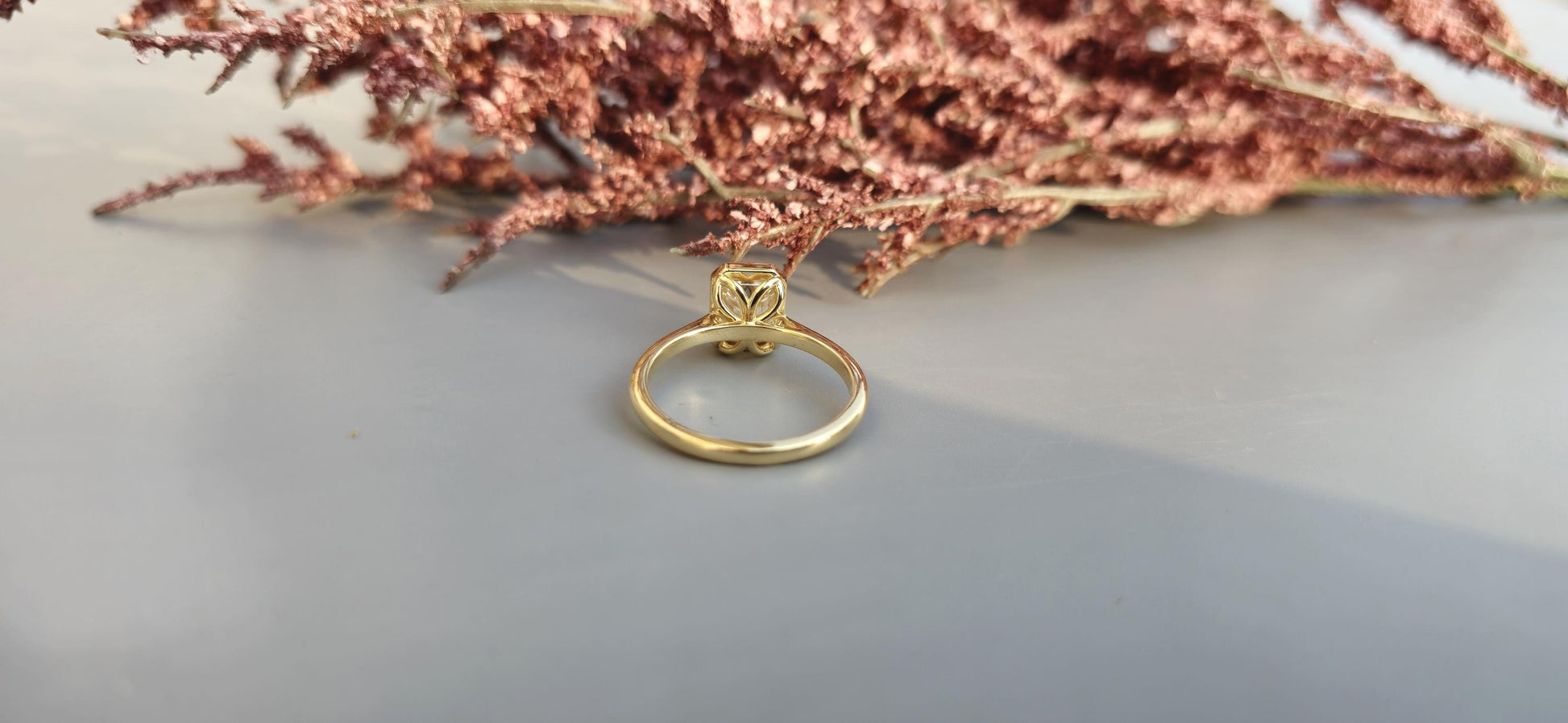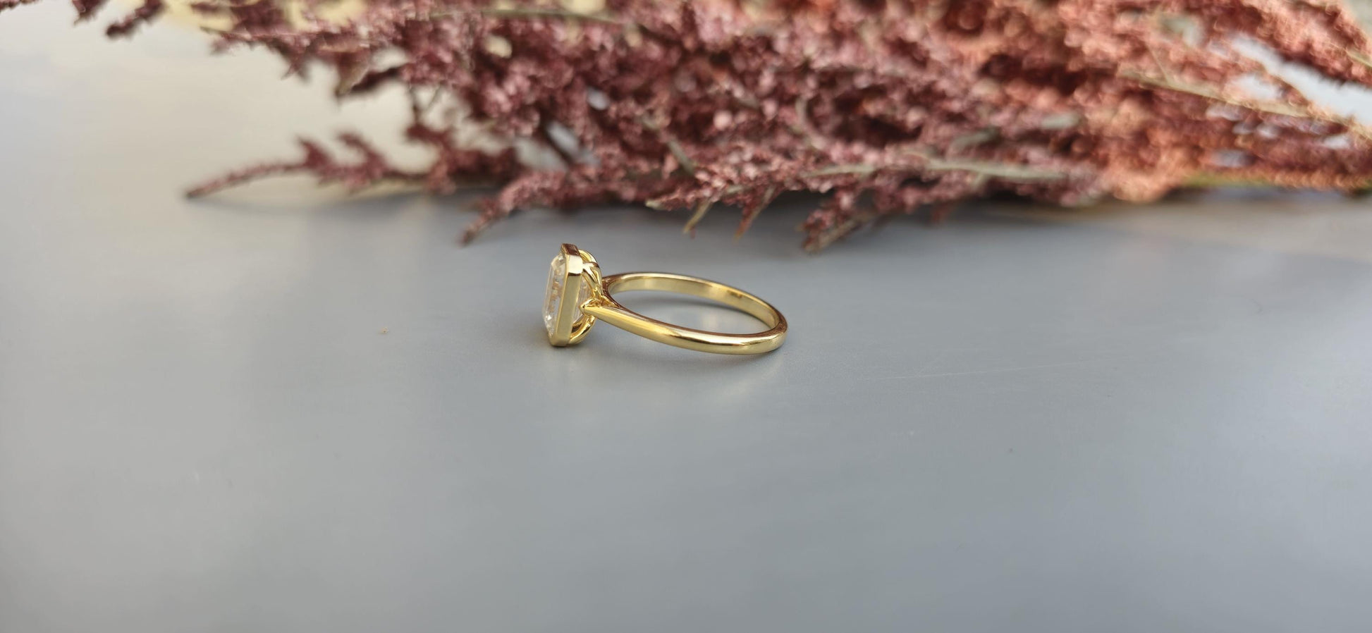Bezel Set Emerald Moissanite with Tulip basket Solitaire ring, Engagement ring for her, ring for women, proposal ring