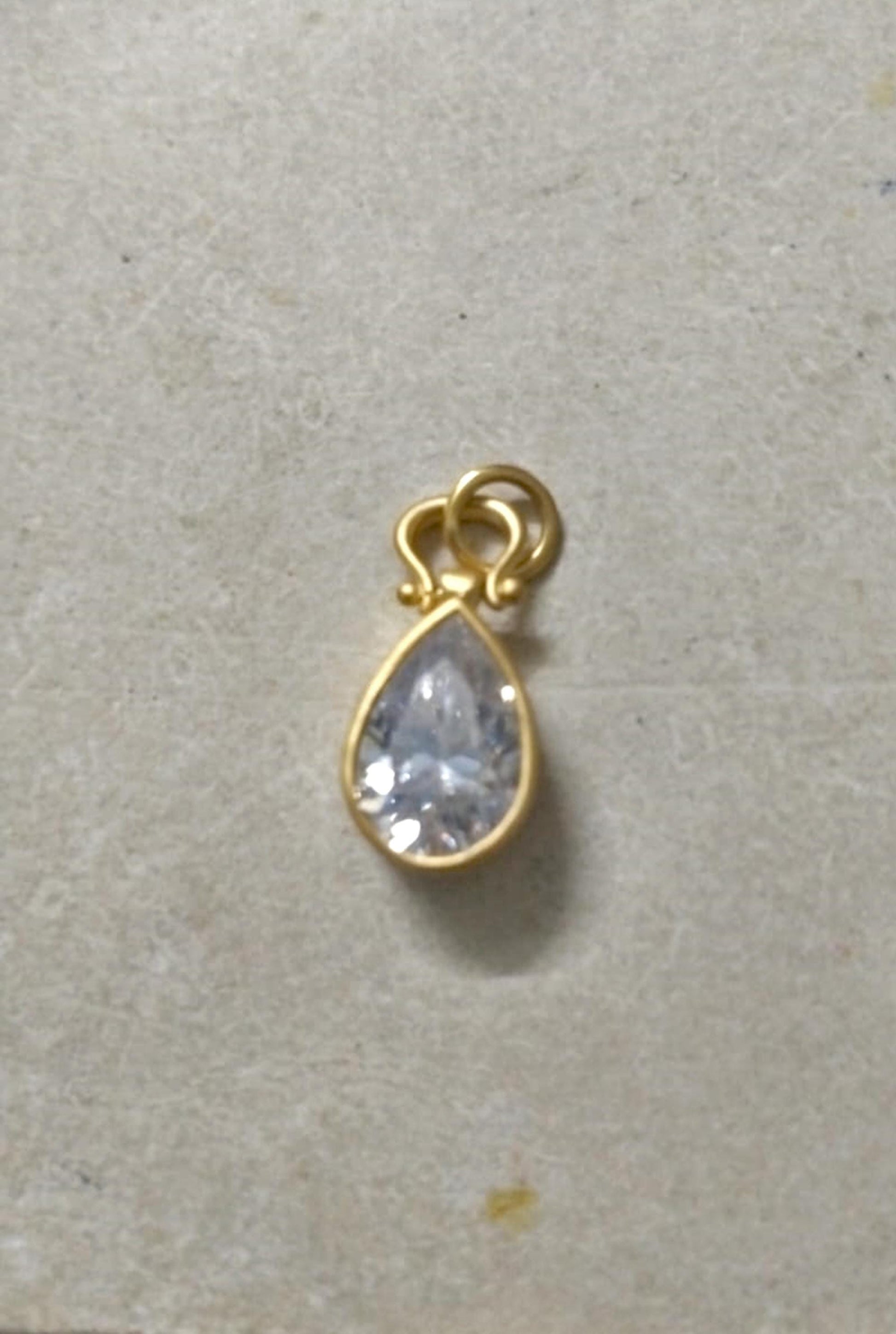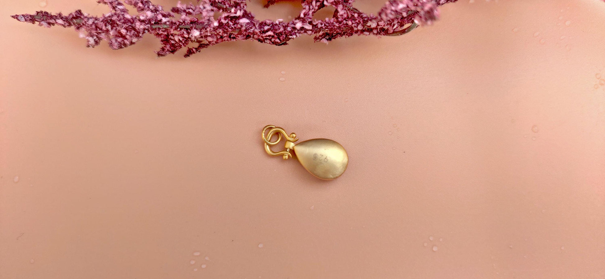 Bezel set moissanite Pear button back personalized pendant without chain in silver with matt gold polish, Pendant for women