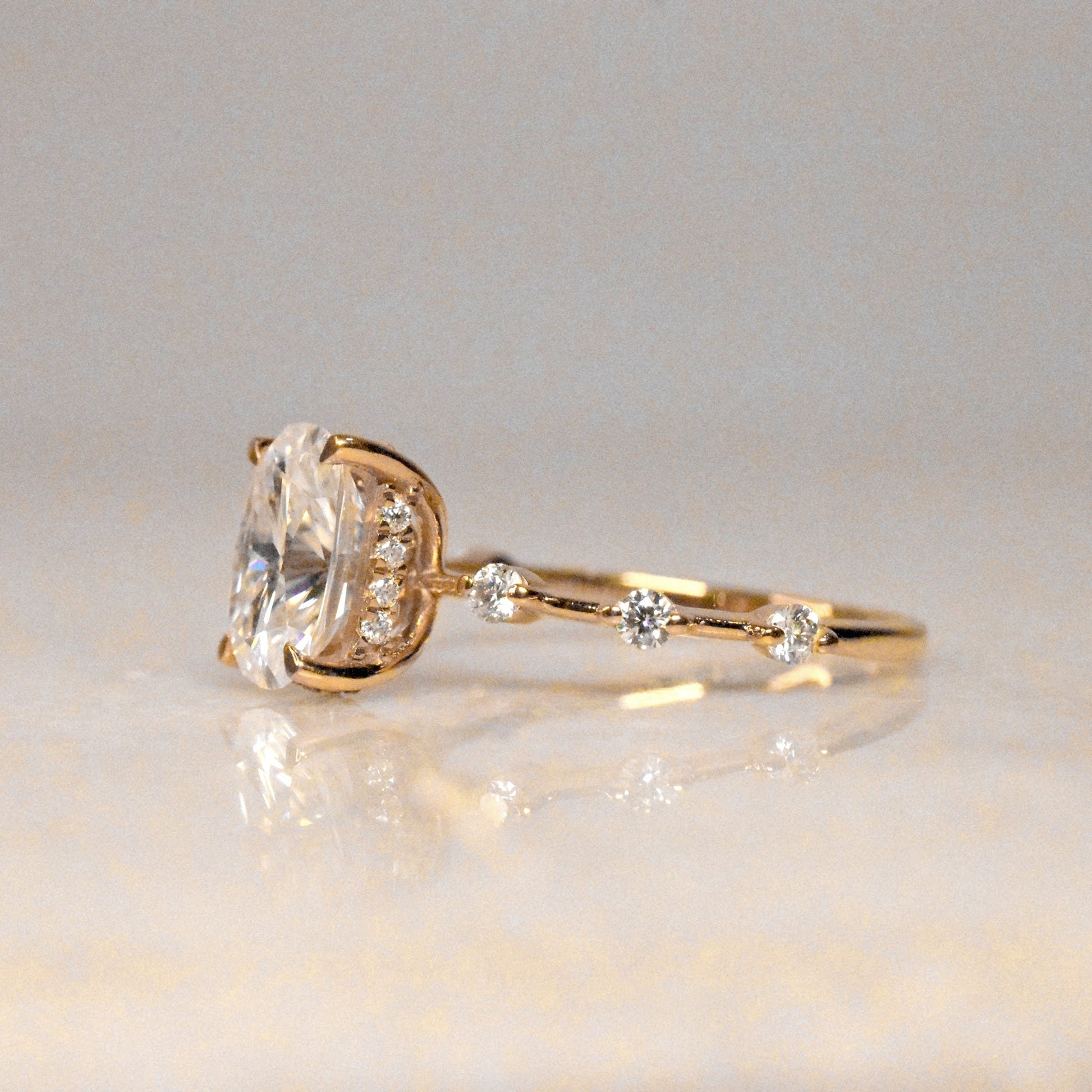 Cushion cut Hidden Halo Moissanite Engagement Ring , Solitaire Engagement ring, Ring for her, distance band, ring for women