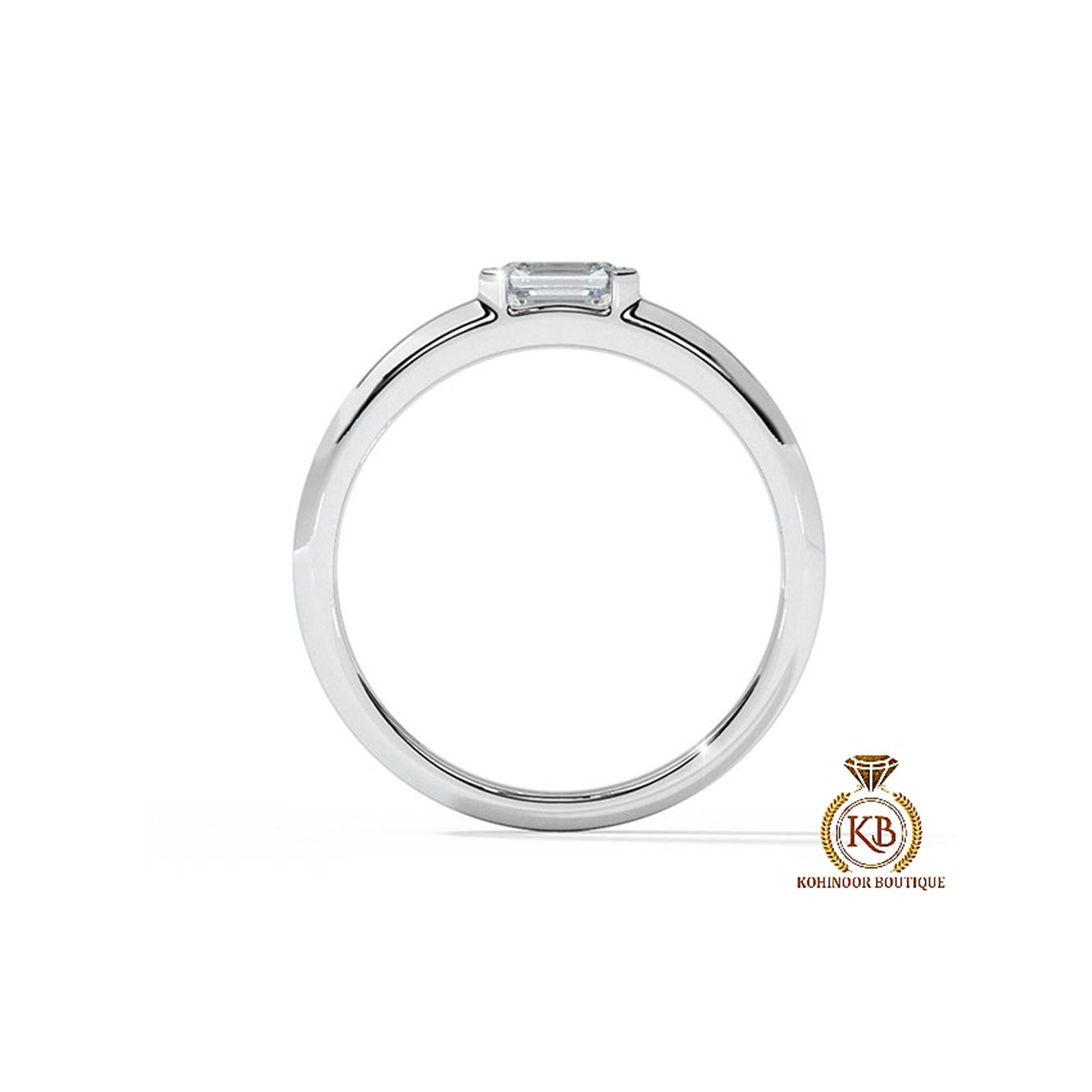 East West half bezel Set Emerald Moissanite Solitaire Engagement ring, unisex ring, ring for women, ring for men, promise proposal ring