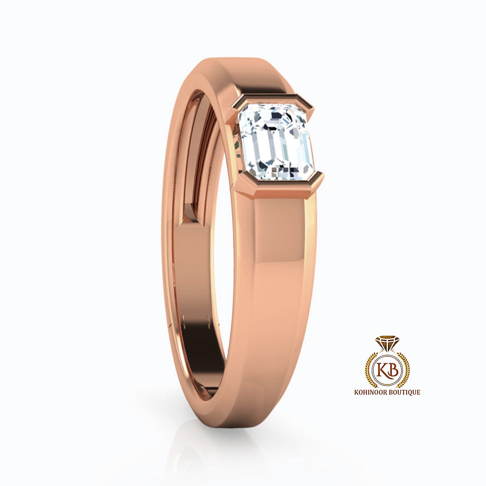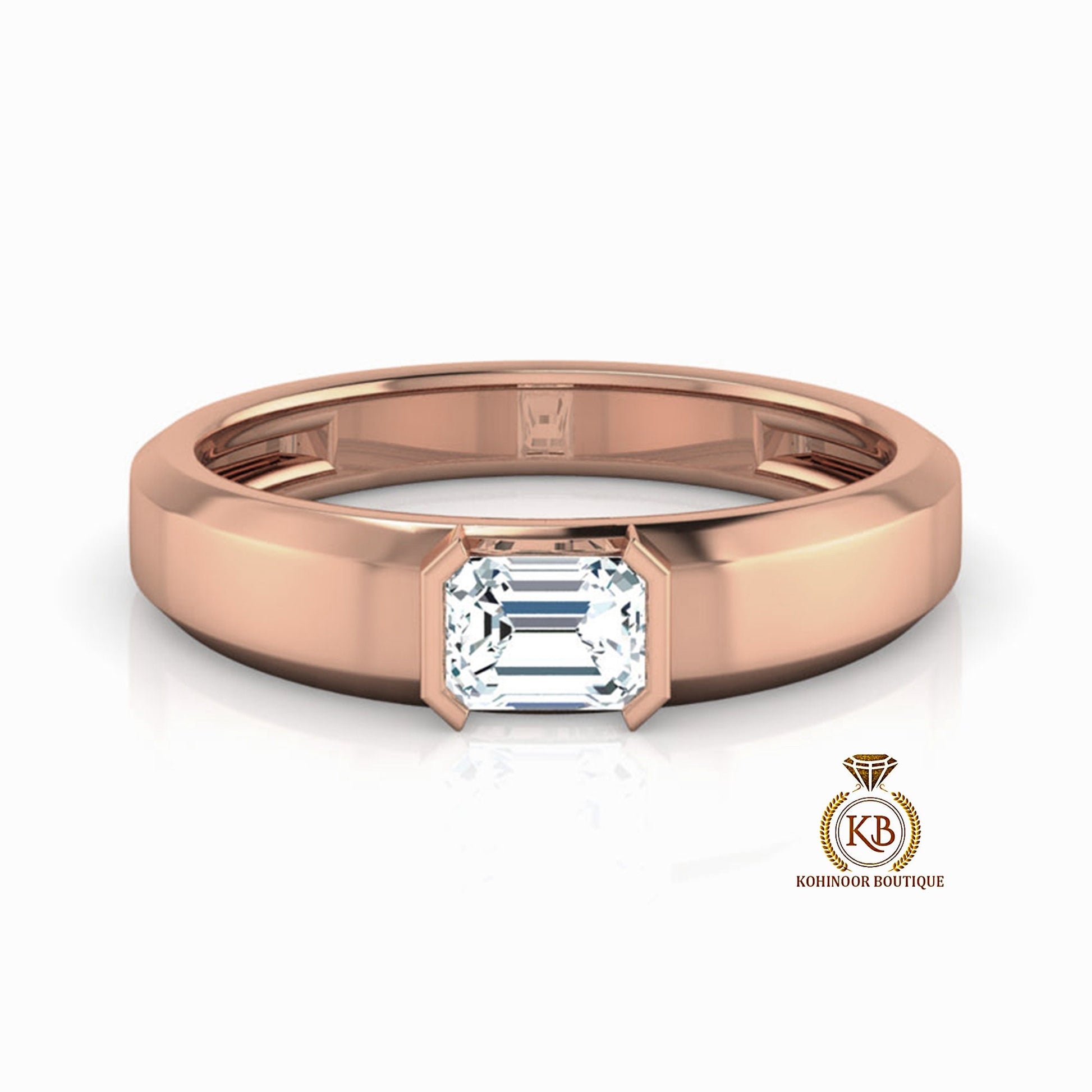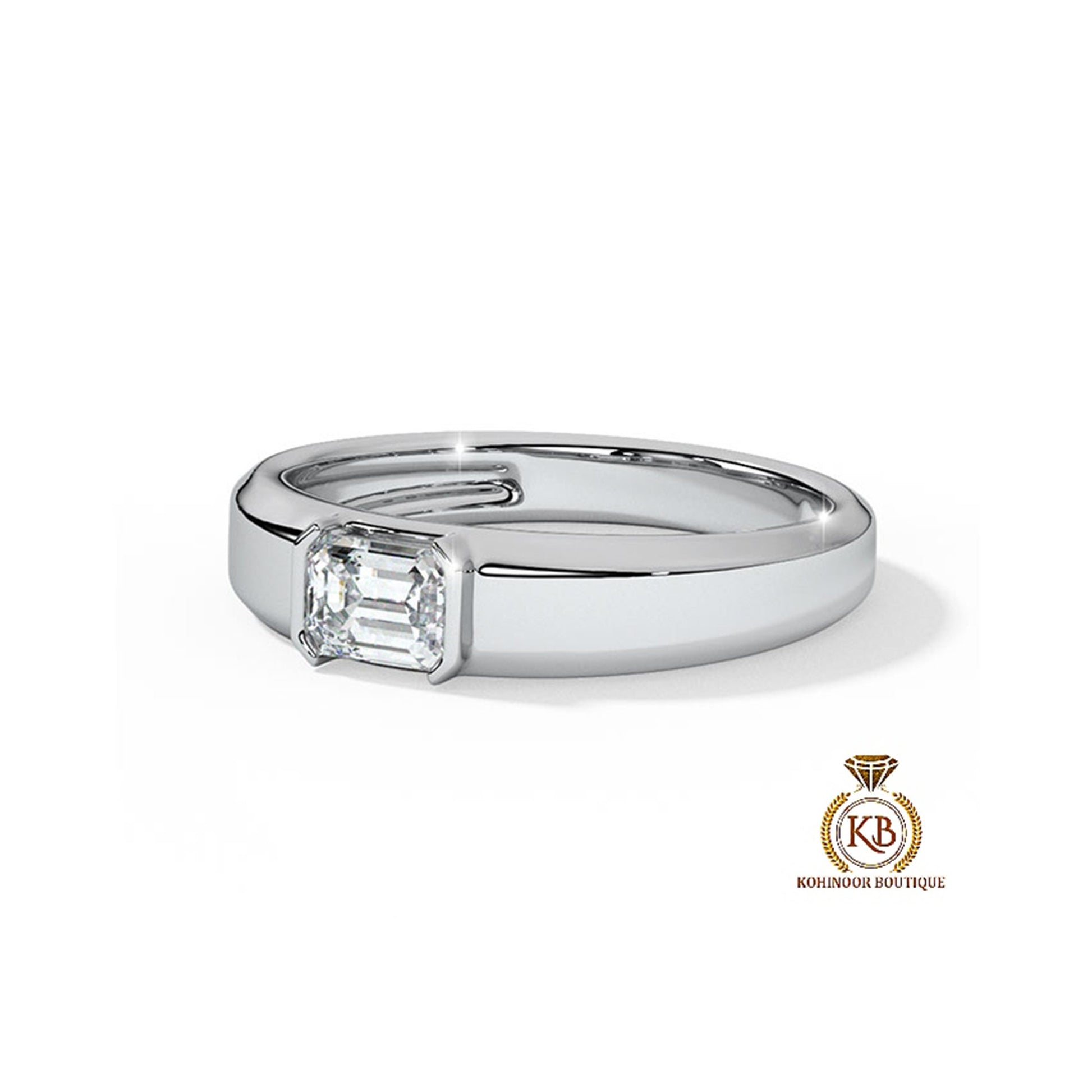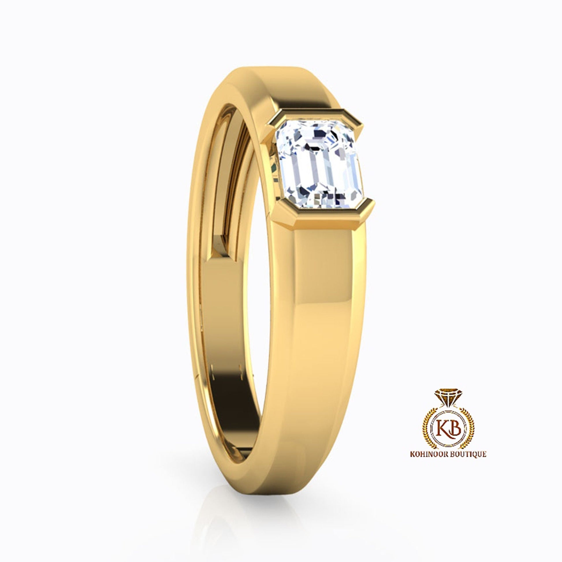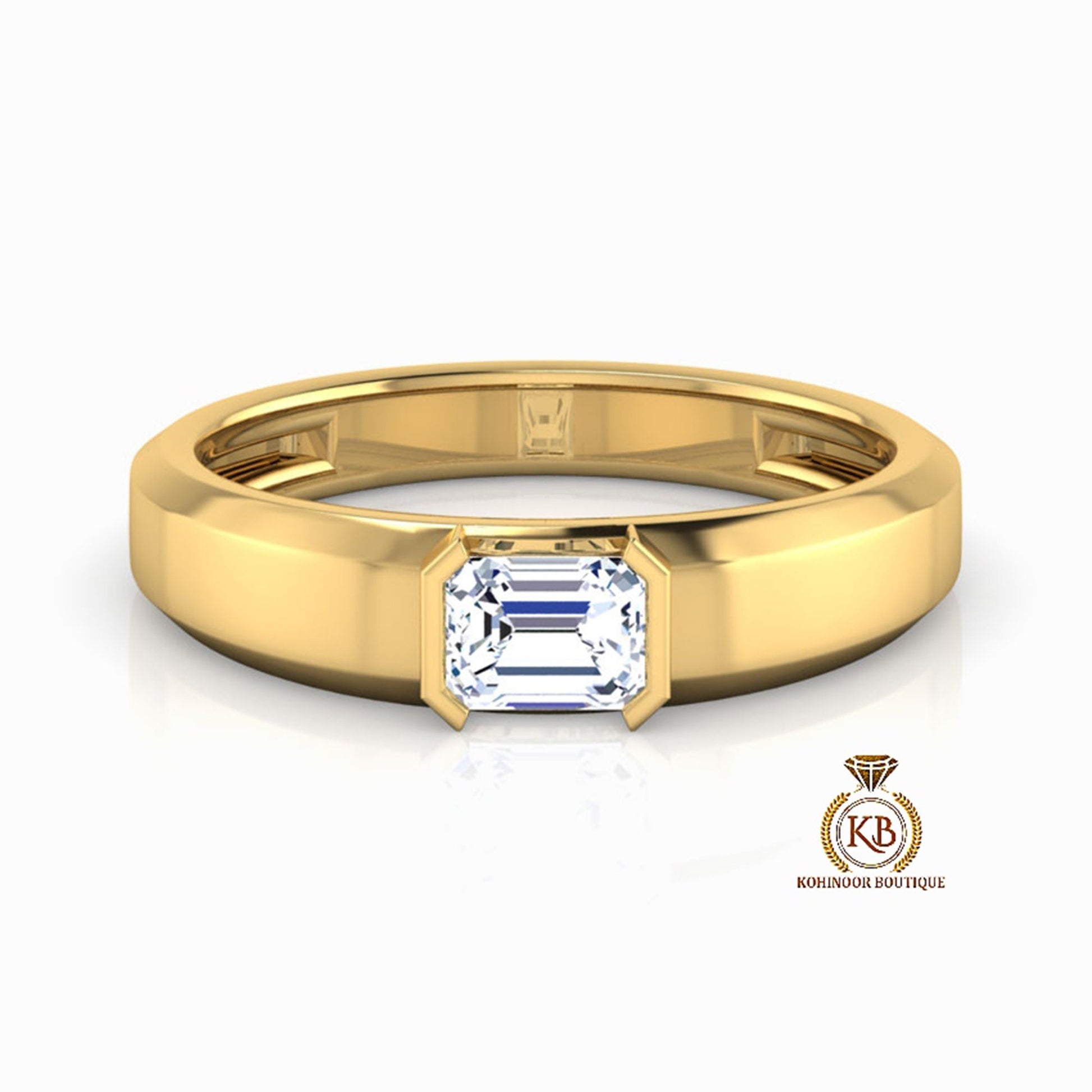 Got questions or concerns? Just send us a message — we're here to help!East West Half bezel Set Emerald Moissanite Solitaire Engagement\Proposal\Anniversary\Wedding Ring for Men\Women\Unisex in 18k\14k\10k