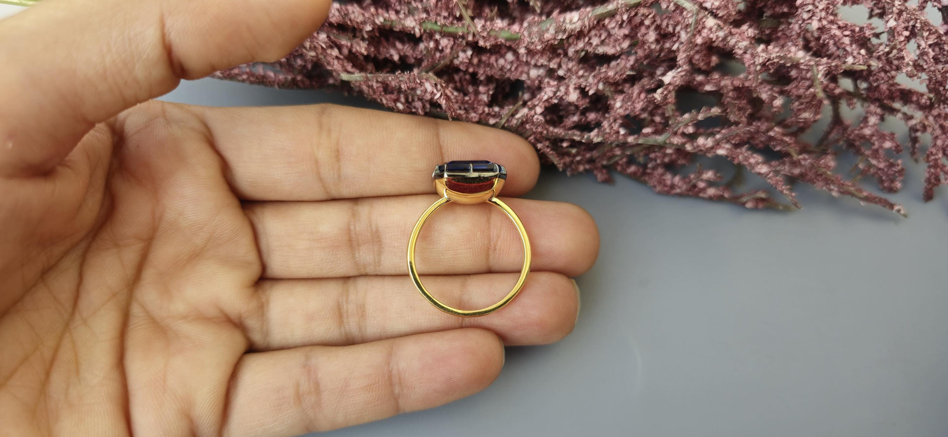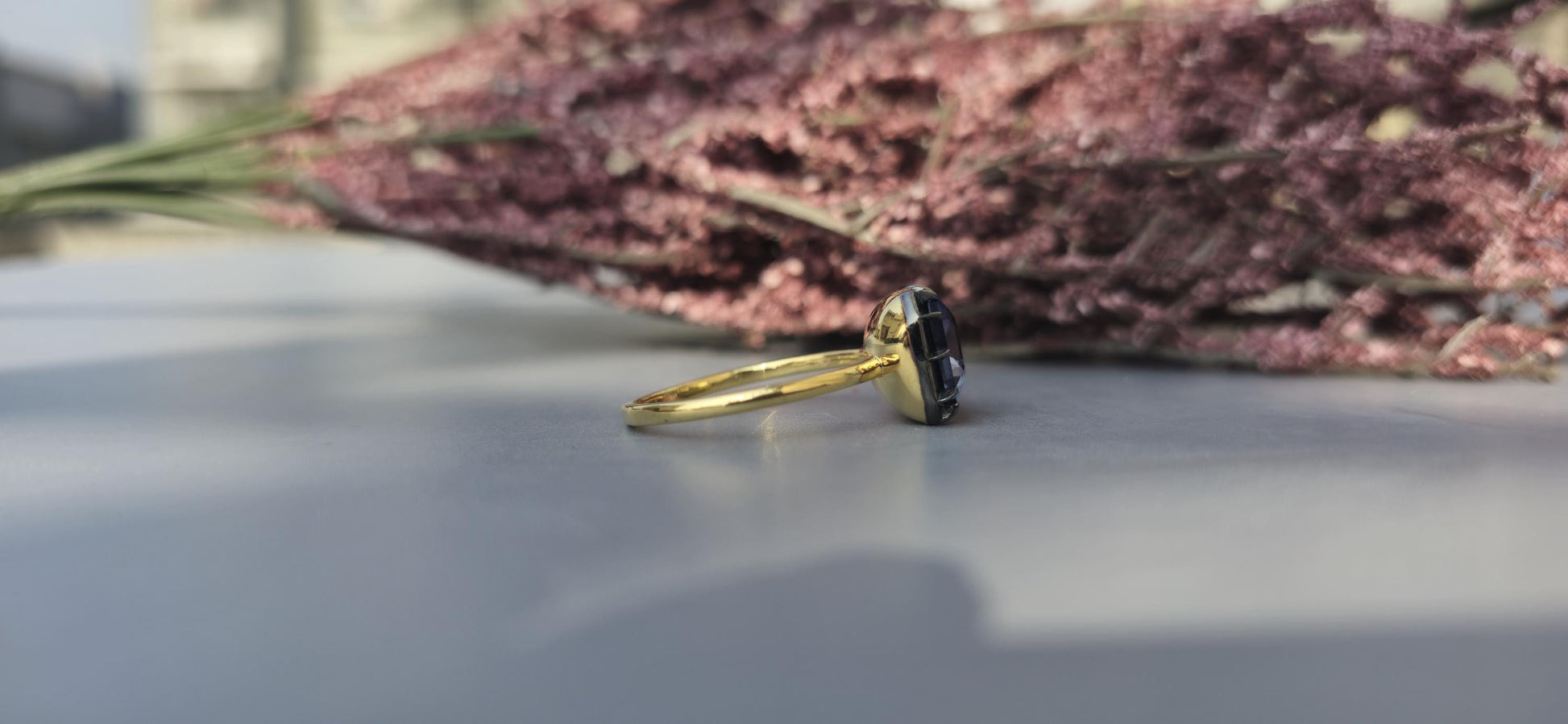 East West set Corn flower Blue sapphire emerald Cut Georgian cut down button back solitaire engagement ring, ring for her, ring for women