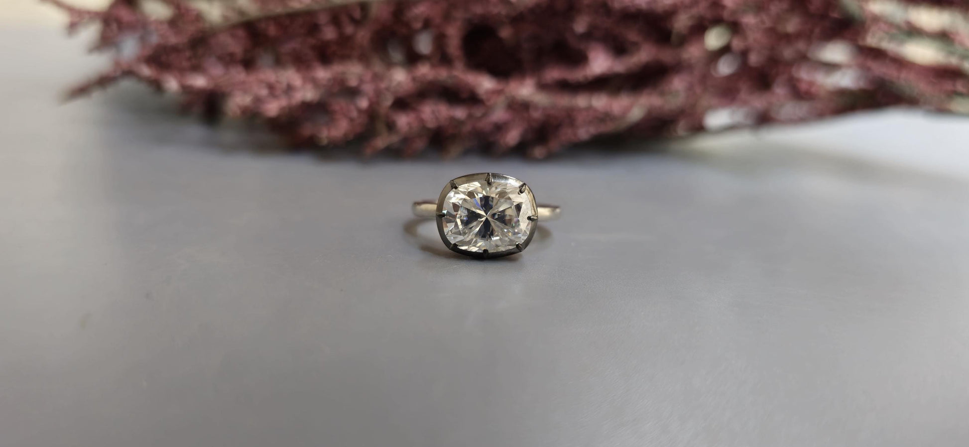 East West set Elongated Cushion Cut Moissanite Georgian cut down button back solitaire engagement ring, ring for her, ring for women