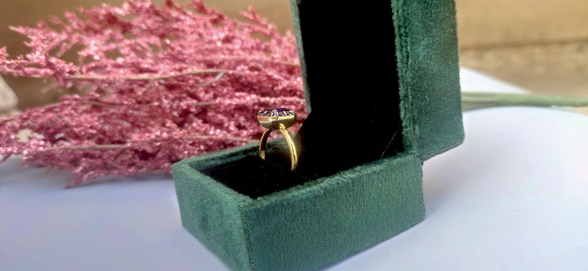 green moissanite ring, solitaire ring, and some festival jewelry like Easter gifts,