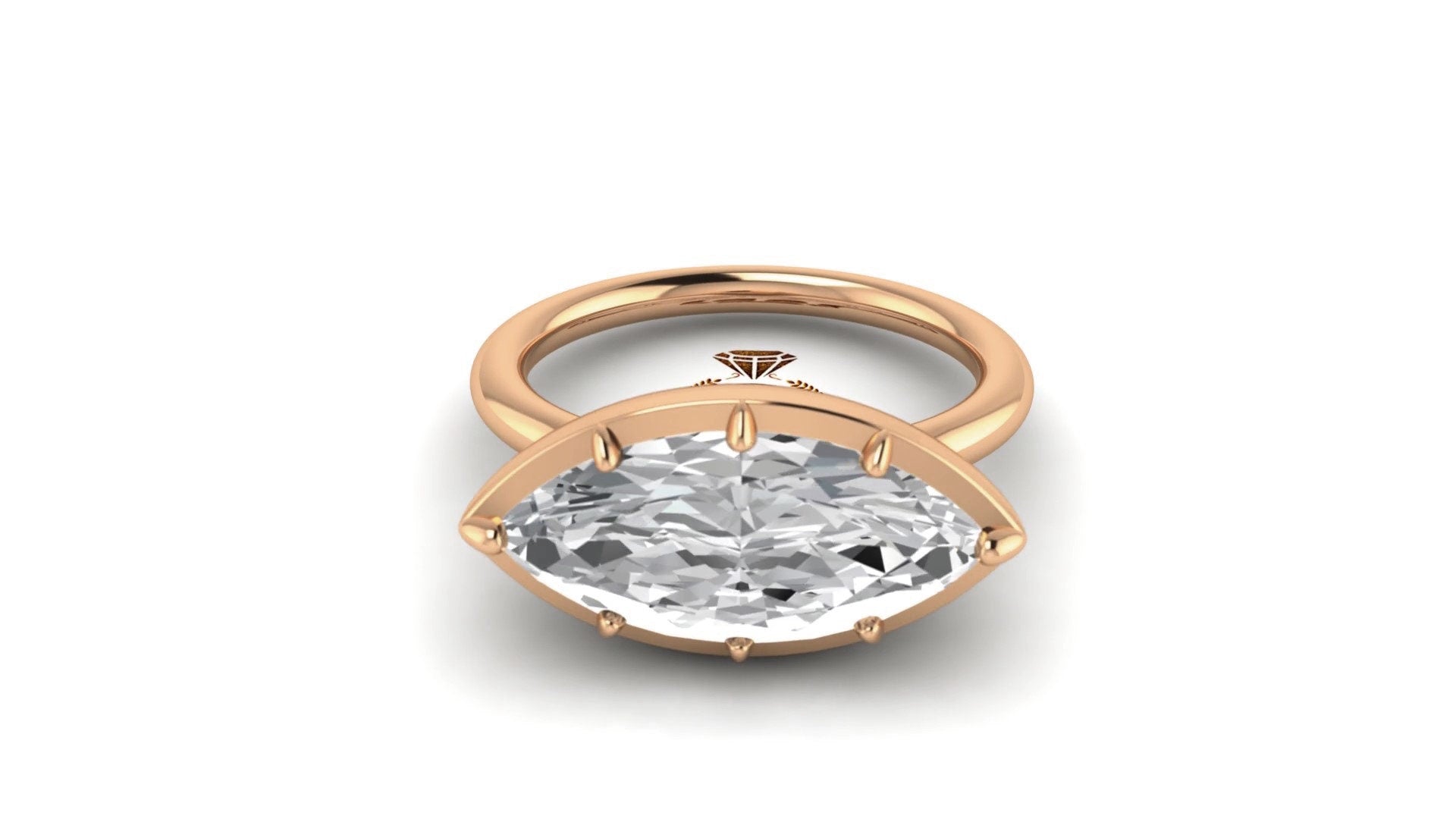 East West set Marquise Button Back Georgian Cut Down Set Moissanite Solitaire Engagement ring, Ring for her, proposal Ring.
