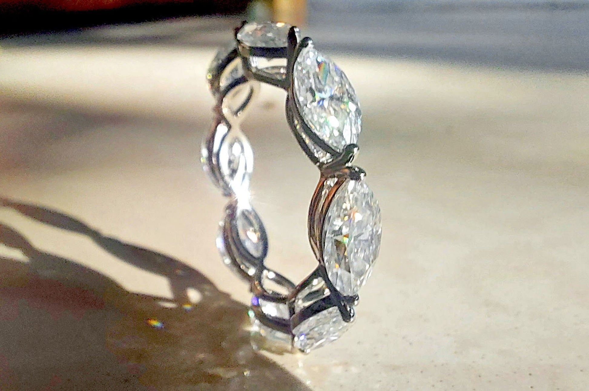 East West Set Marquise Moissanite half\full eternity wedding band, Bridal stackable, Anniversary gift for wife