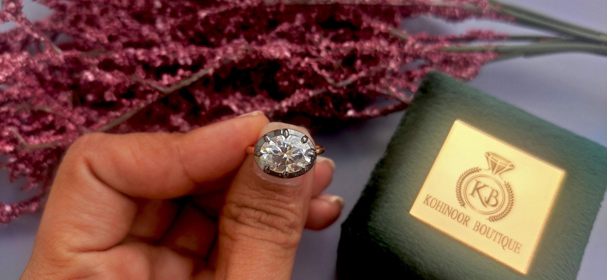 At Kohinoor Boutique, you’ll find Moissanite, which is less expensive, shinier, prettier, and less guilt