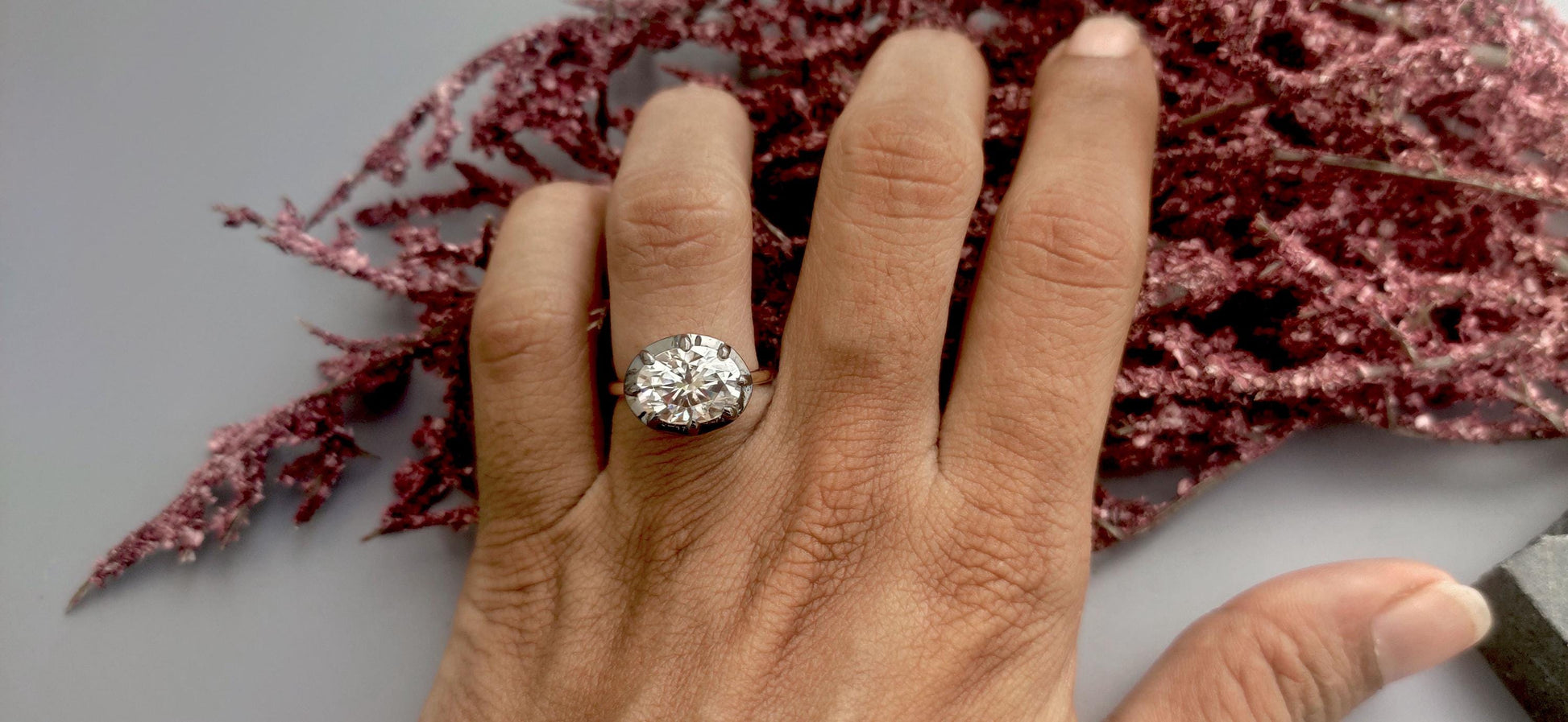 East west set Oval Moissanite Button Back Georgian Cut Down Set Solitaire Engagement ring, blackened gold ring ring for women, Ring for her.
