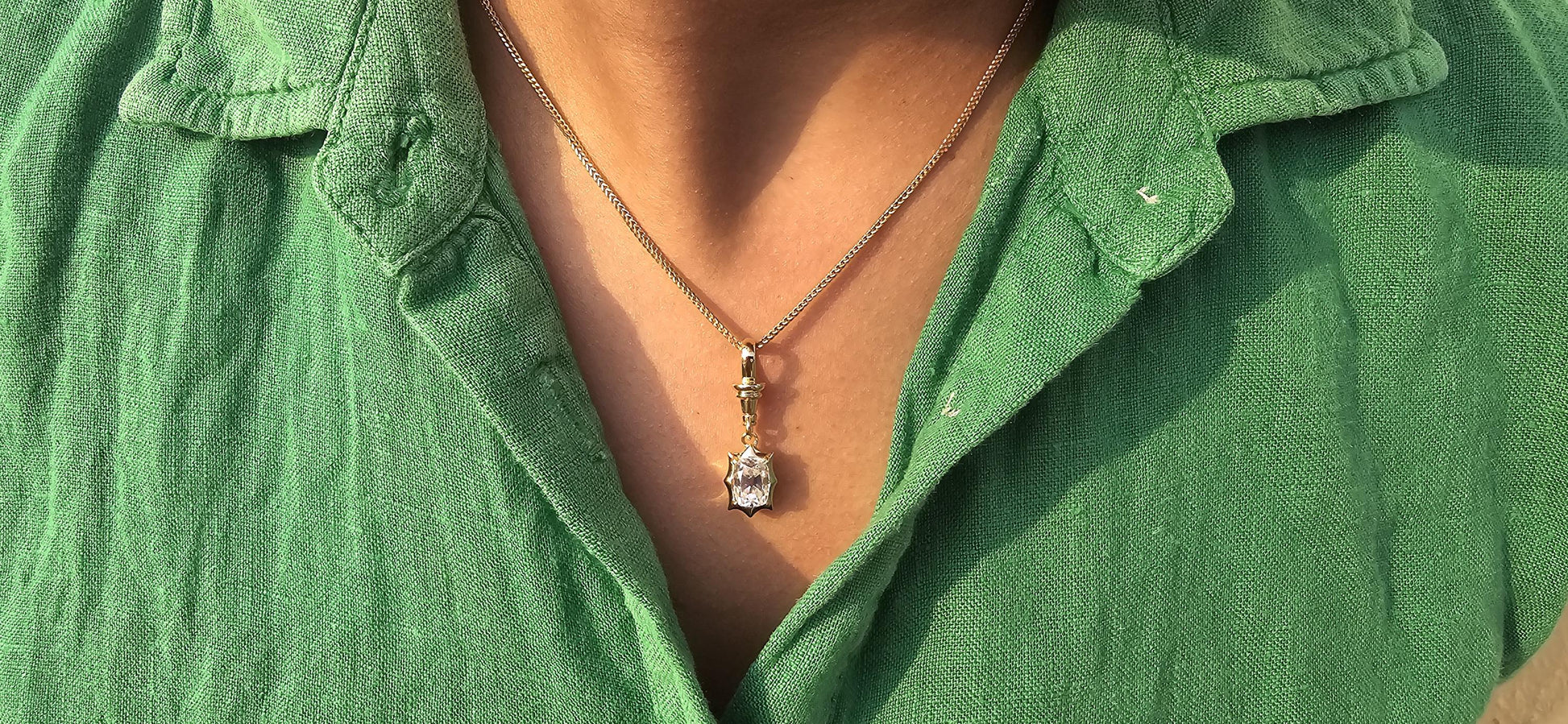 Elongated Old mine cut OMC Cushion Cut Collet Georgian cut down set button back with swivel clasp Moissanite Pendant, pendant without chain