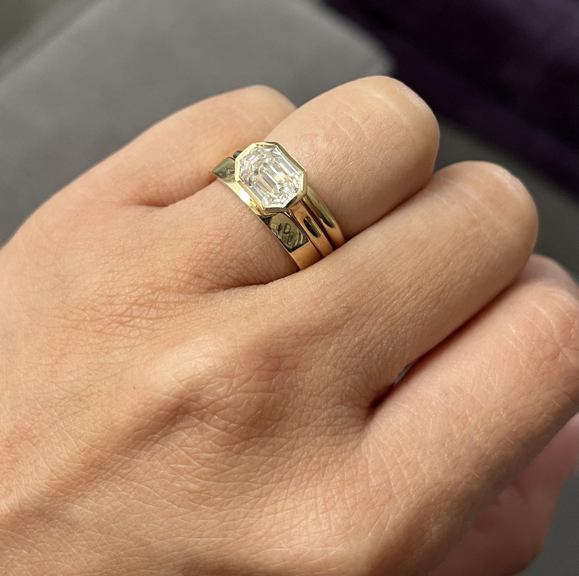 Emerald Cut Moissanite Bezel Engagement solitaire ring without band, right hand ring, statement moissanite ring, ring for women