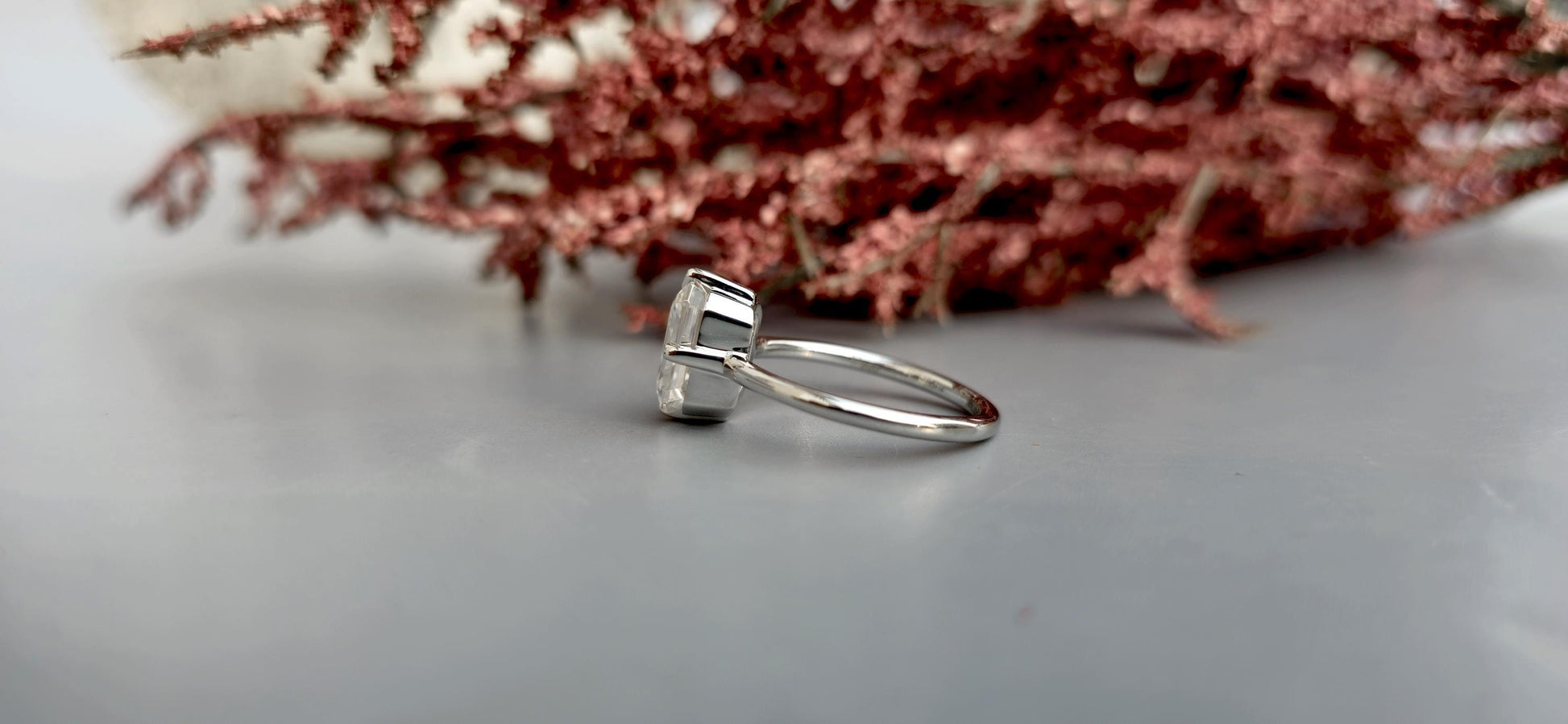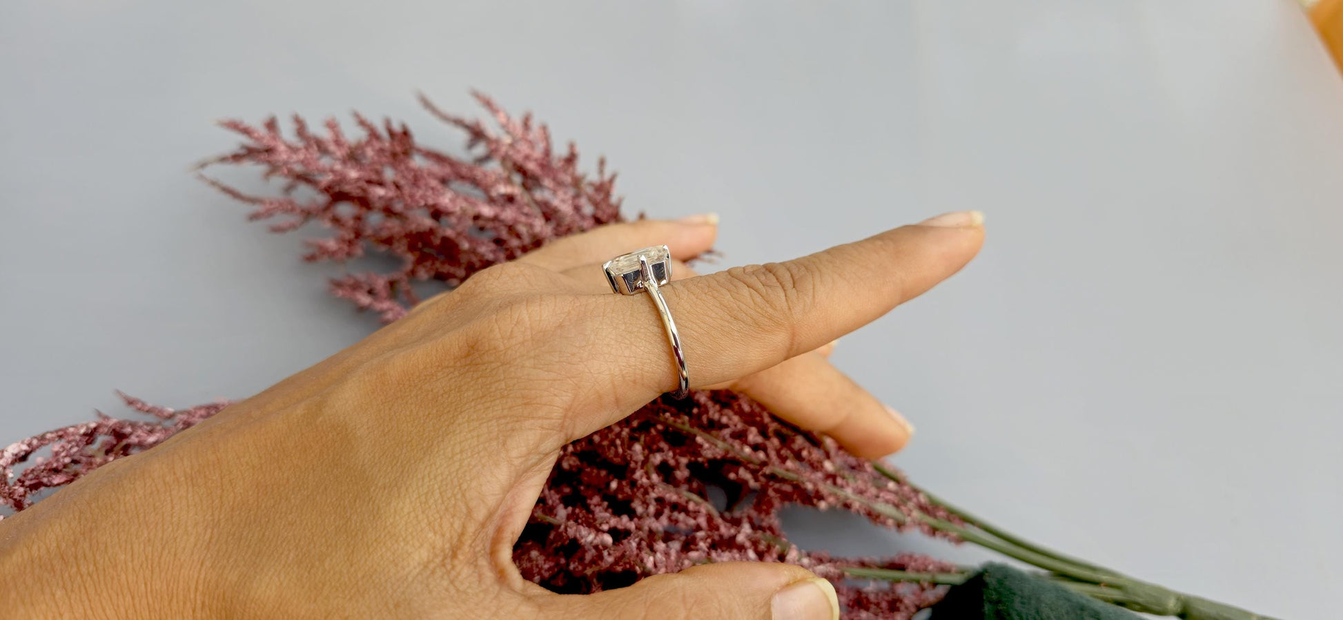 Emerald cut Moissanite Compass prong Basket set solitaire Engagement Ring for women, promise Proposal Ring, ring for her, gift for women