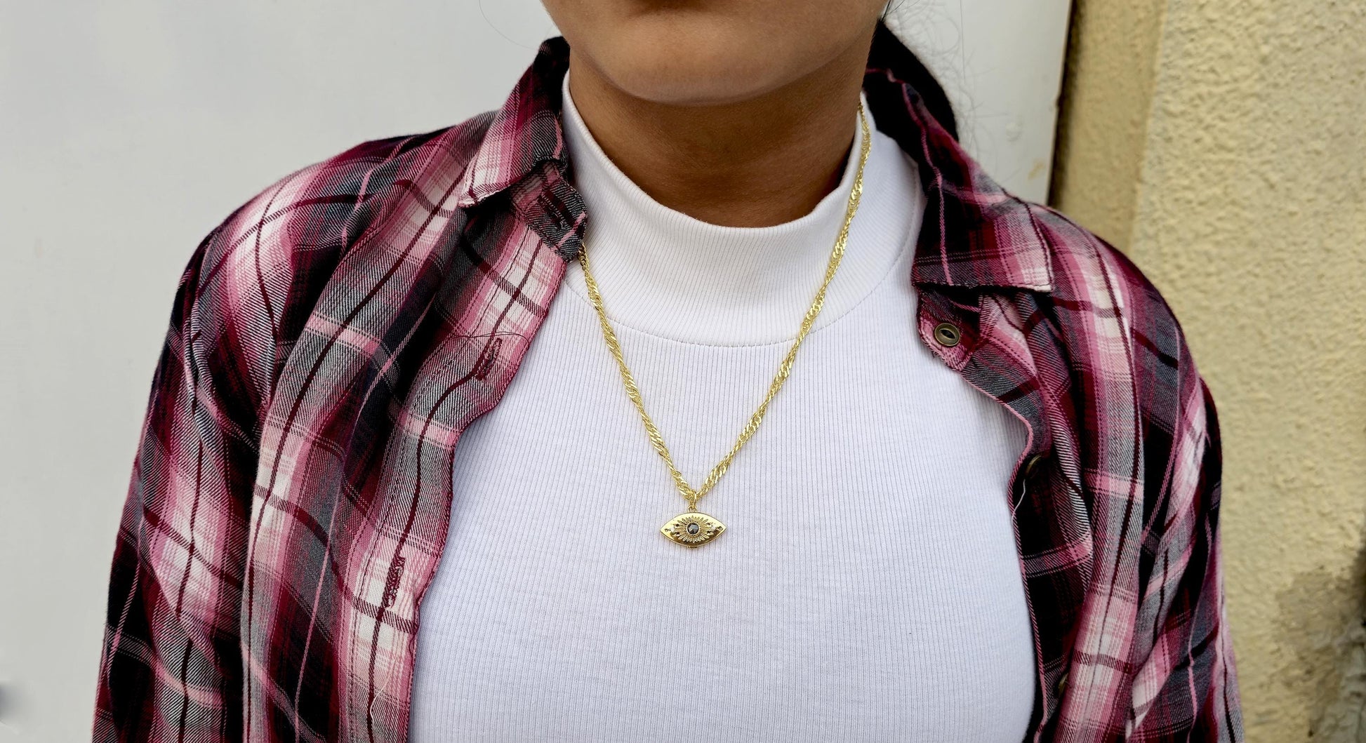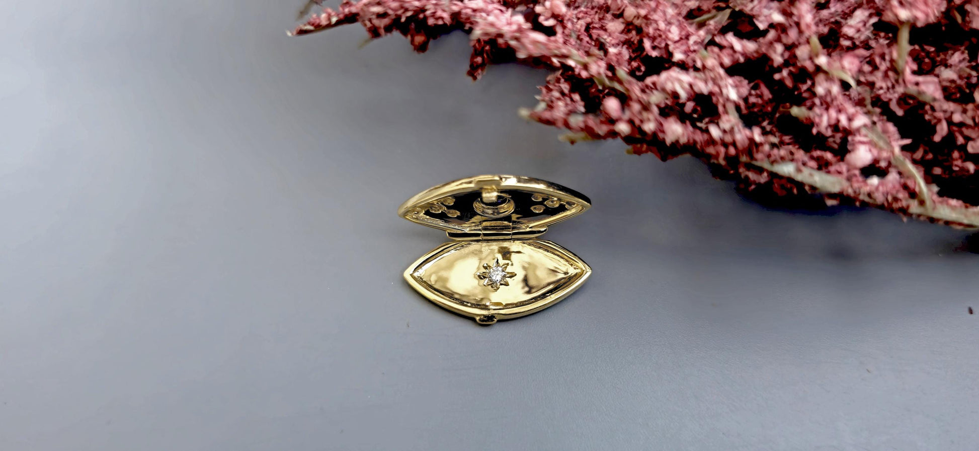 Evil eye pendant, Salt and pepper with lab grown diamond Third Eye talisman charm locket, anniversary birthday gift pendant for women, wife