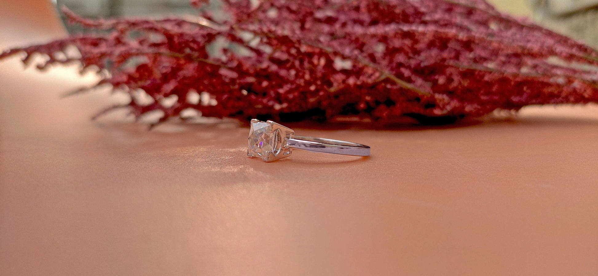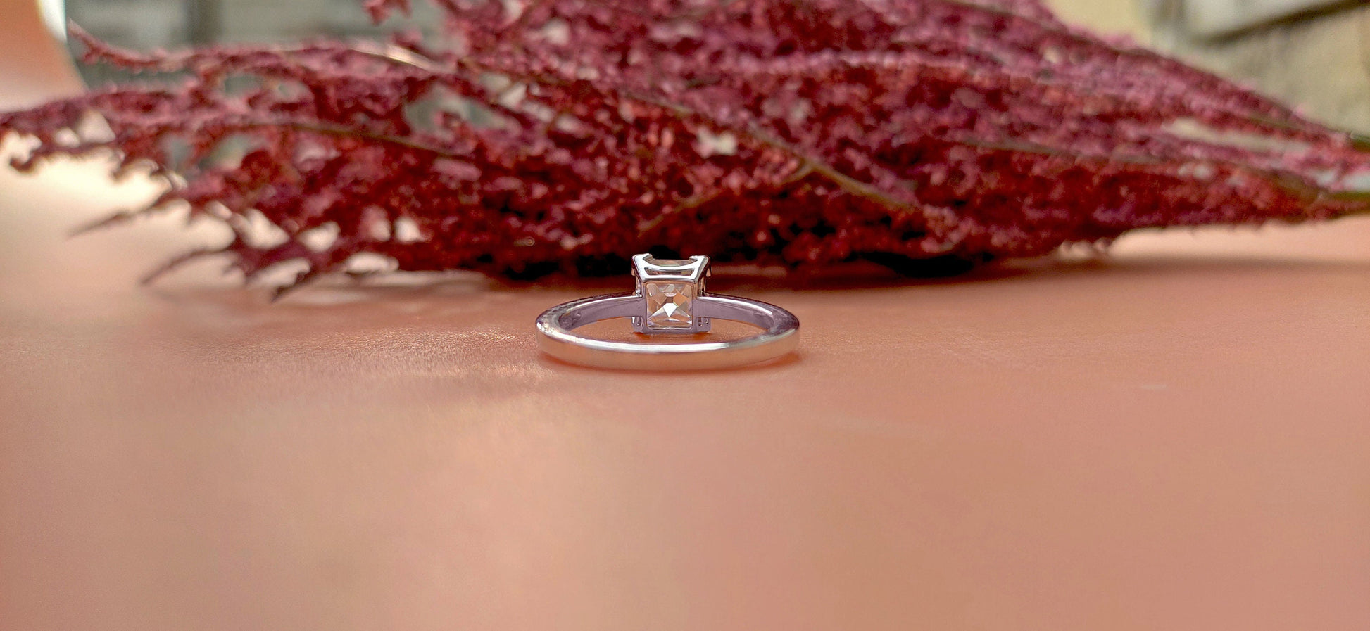 French cut Moissanite Solitaire Engagement ring, vintage moissanite ring, ring for women, ring for her, art deco ring