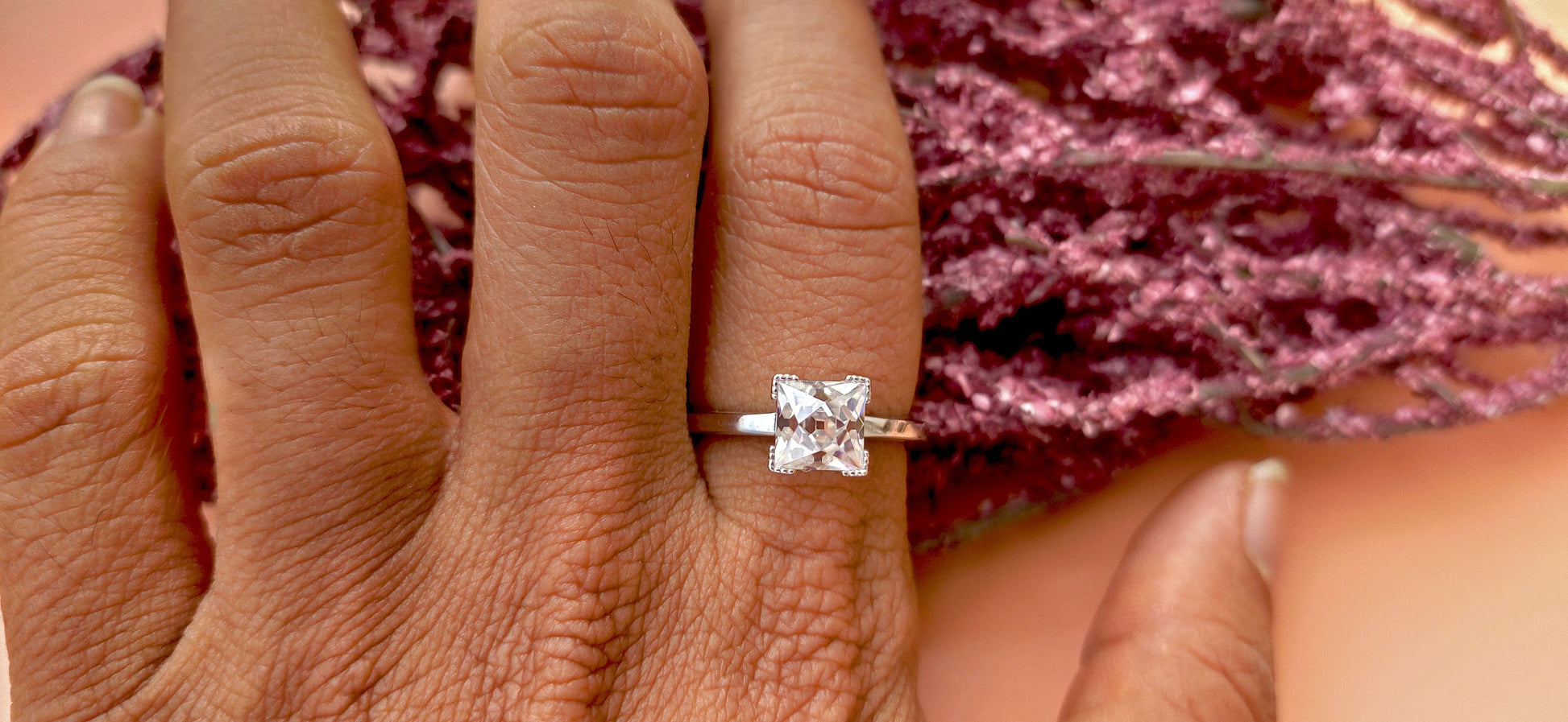 ● Our most popular designs like three stone ring, Asscher cut ring, emerald cut ring, green moissanite