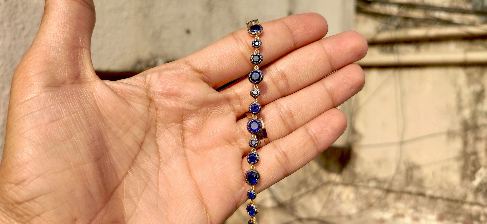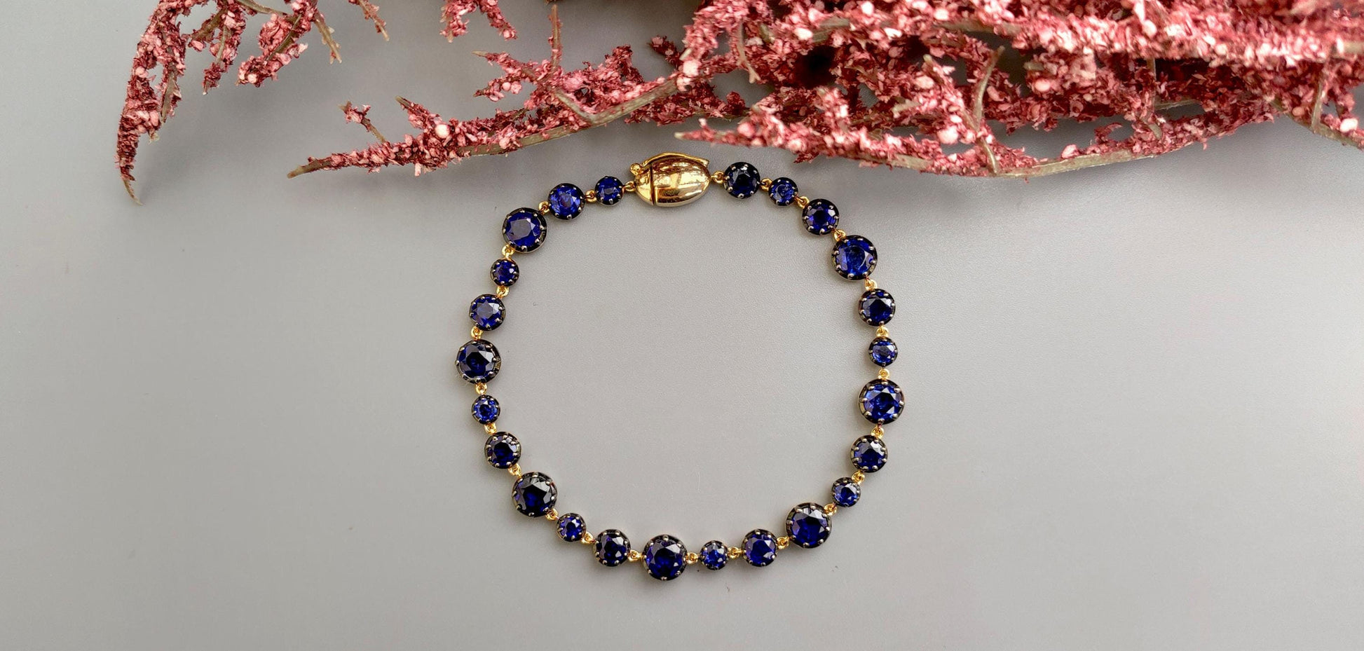 Georgian cut down button back set sapphire Tennis Bracelet, Bracelet for women, Bracelet for girls, Bracelet for her, Anniversary gift