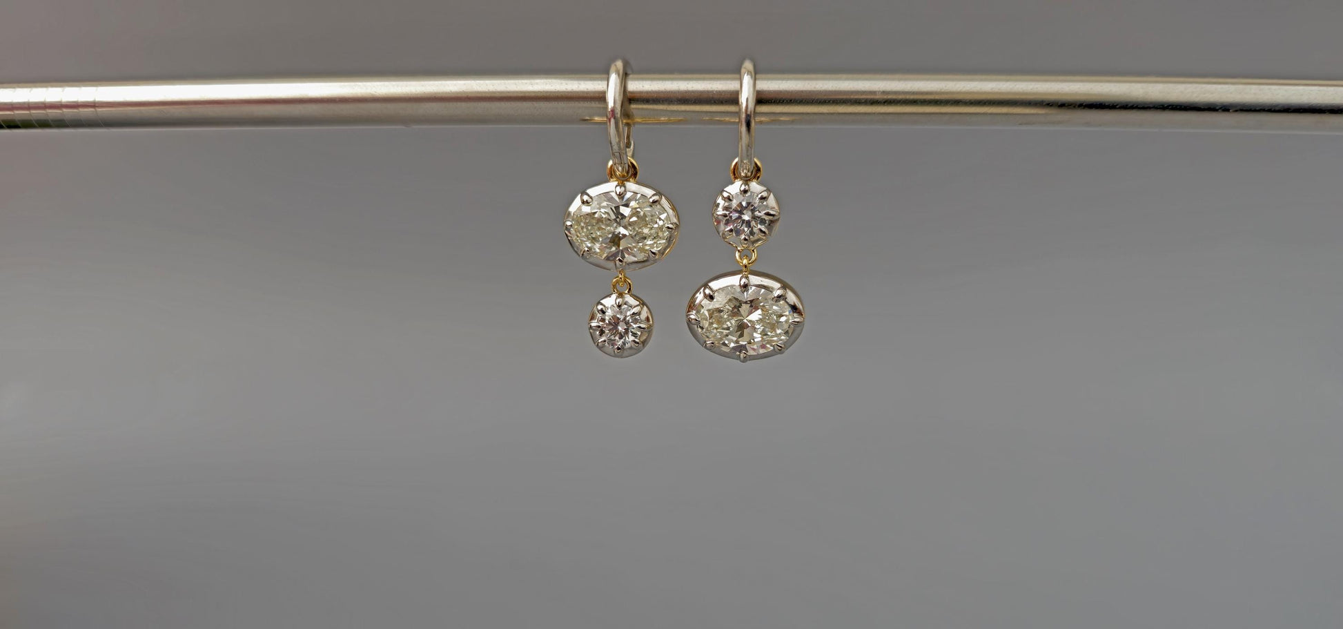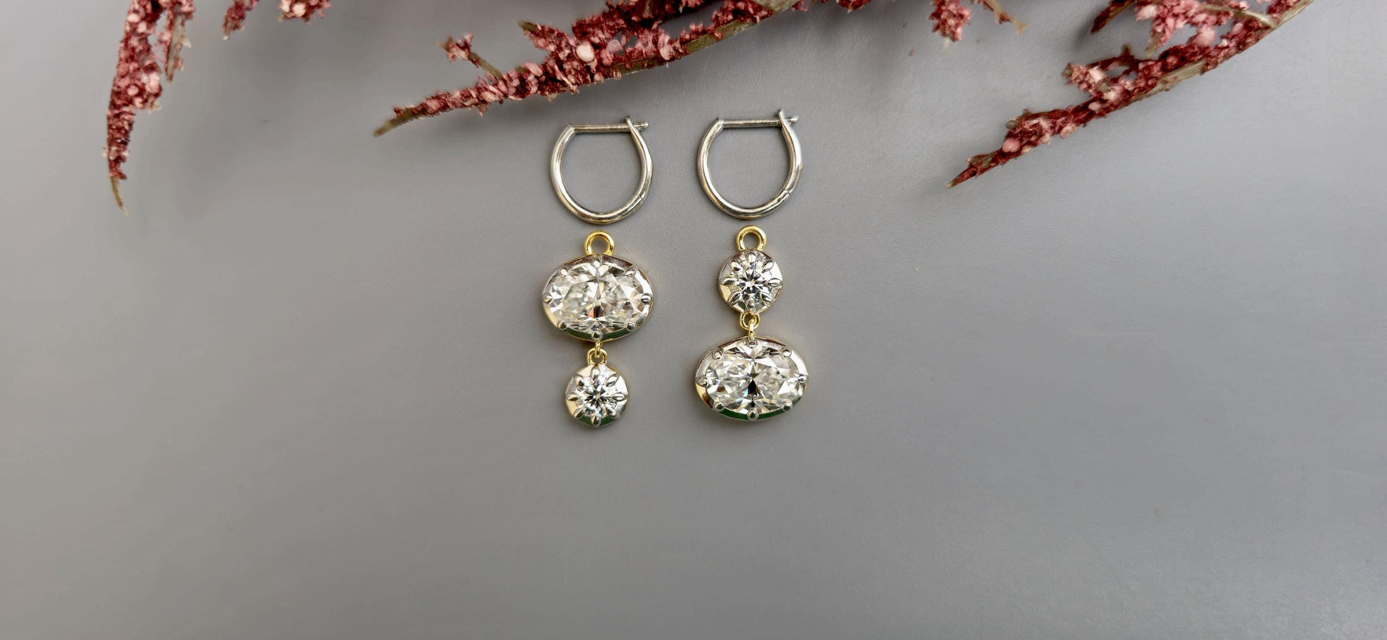 Georgian cut down multi shape lab grown diamond hoops dangle earrings, statement earring, 2 toned earrings, dangled earrings for women
