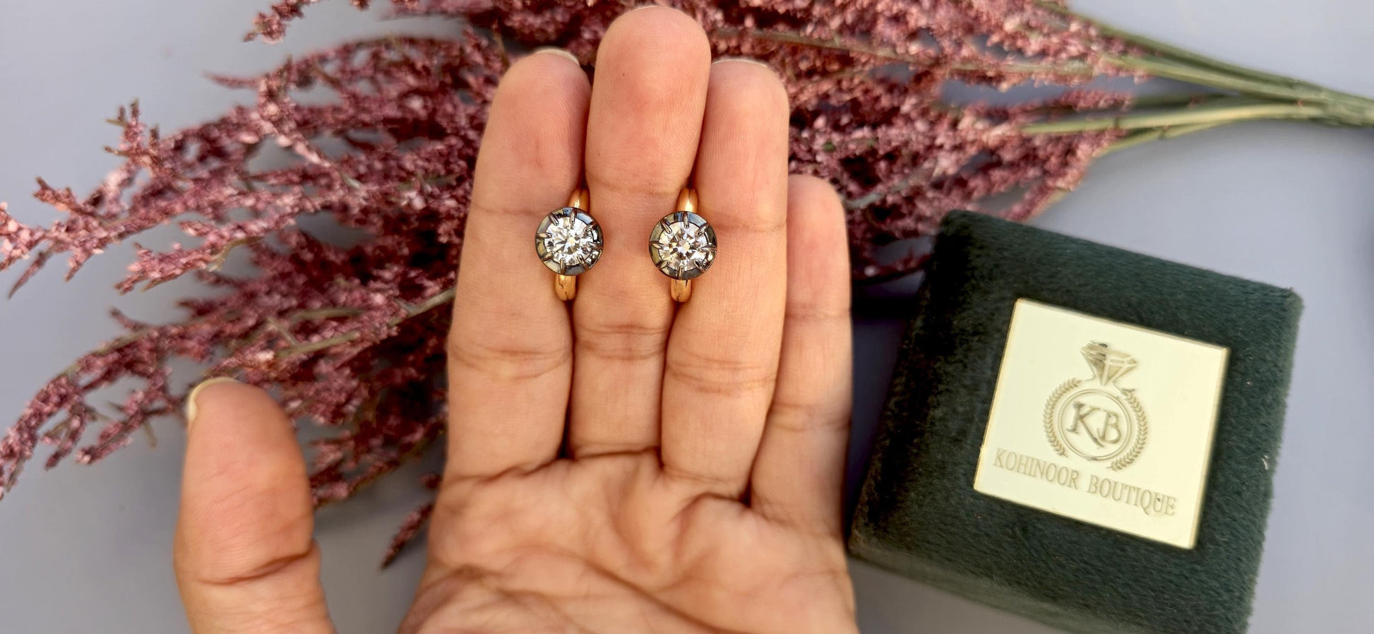 Got questions or concerns? Just send us a message — we're here to help!Georgian Victorian Style Lab Grown Diamond Hoops, Georgian cut down Button back huggie, Blackened Gold Stud Earrings, Wedding Earring.