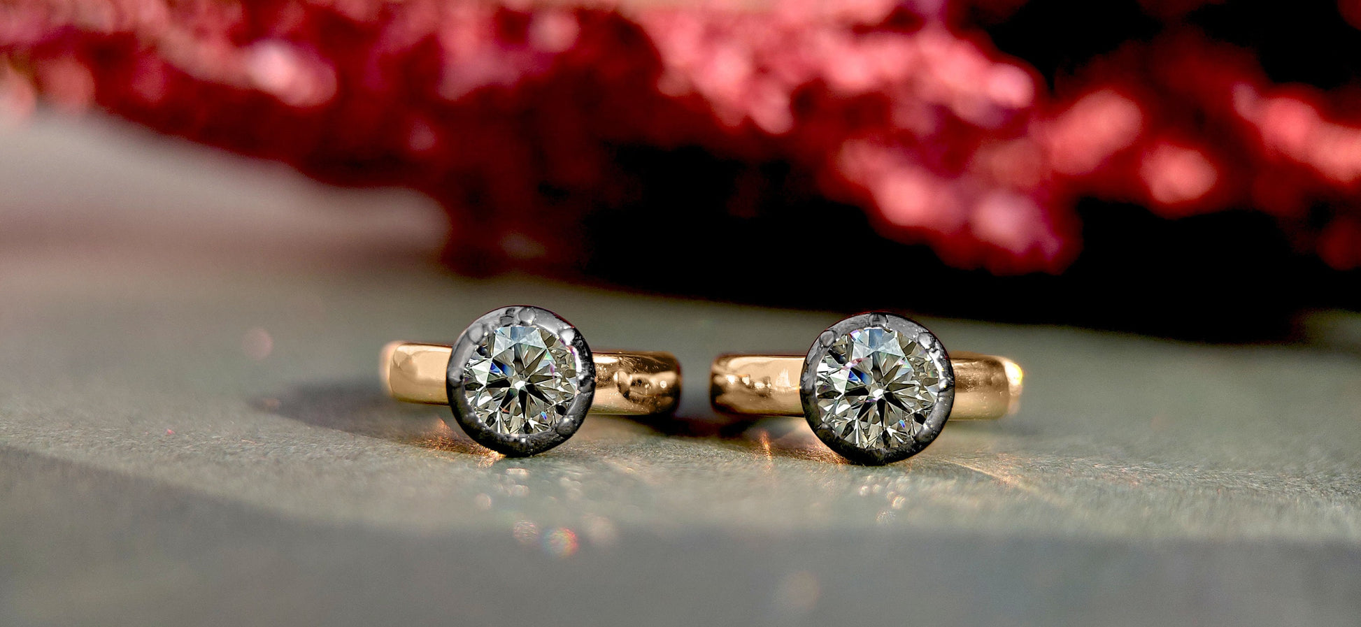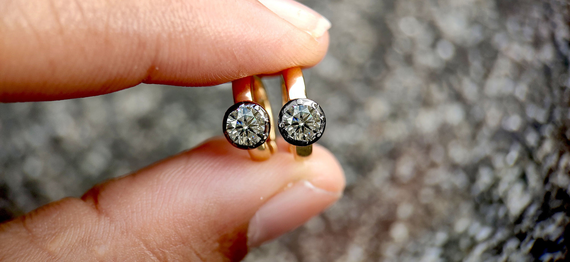 Got questions or concerns? Just send us a message — we're here to help!Georgian Victorian Style Lab Grown Diamond Hoops, Georgian cut down Button back huggie, Blackened Gold Stud Earrings, Wedding Earring.