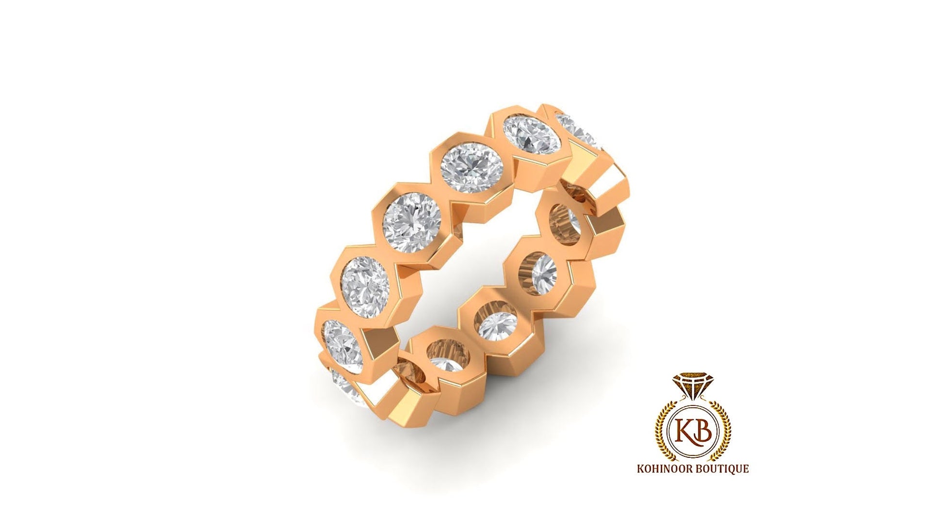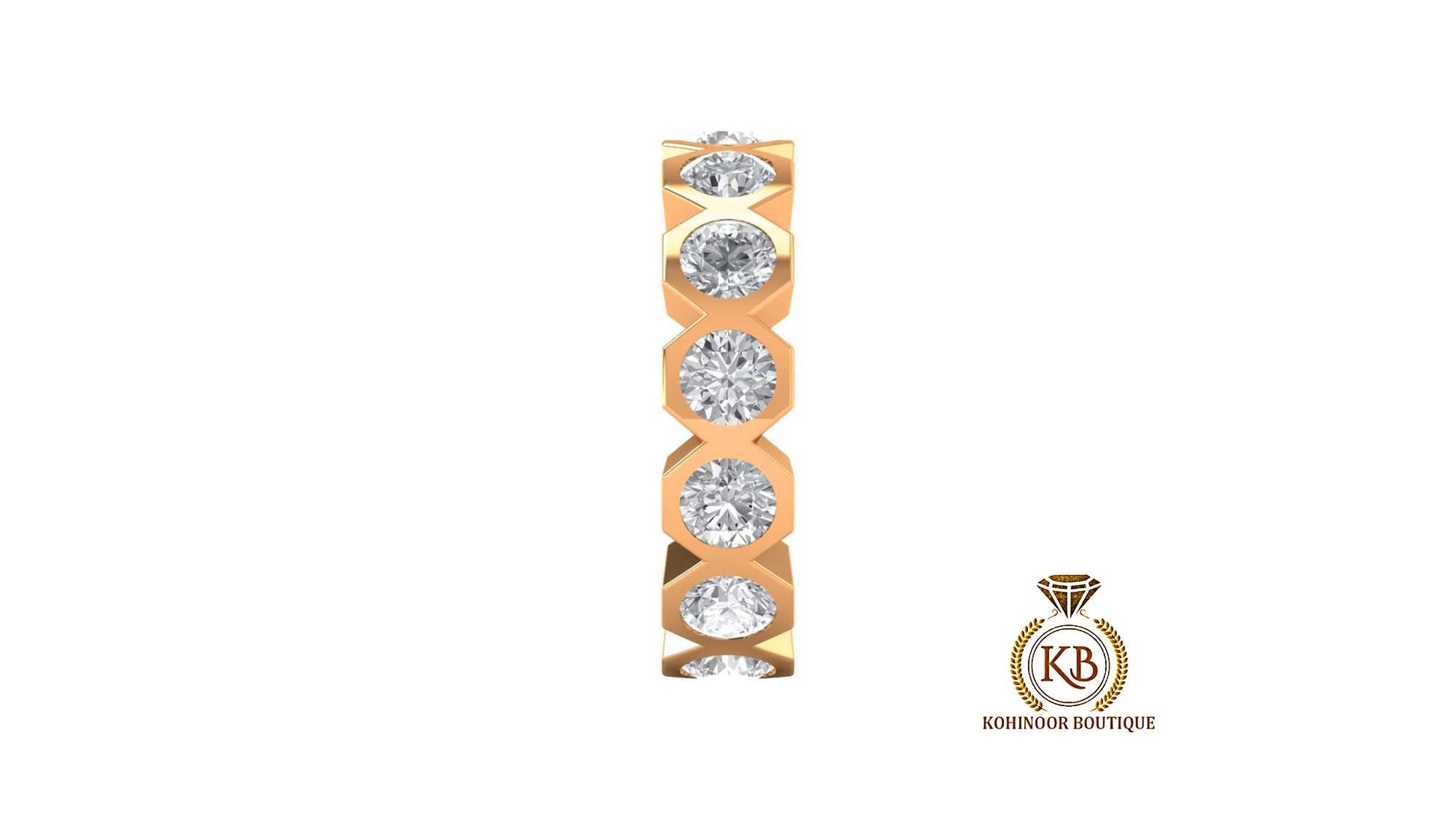 Got questions or concerns? Just send us a message — we're here to help!Customisable Half\Full Eternity, Hexagonal set Round Moissanite bold statement Ring, Wedding Band in 18k\14k\10k and White\Yellow\Rose Gold.