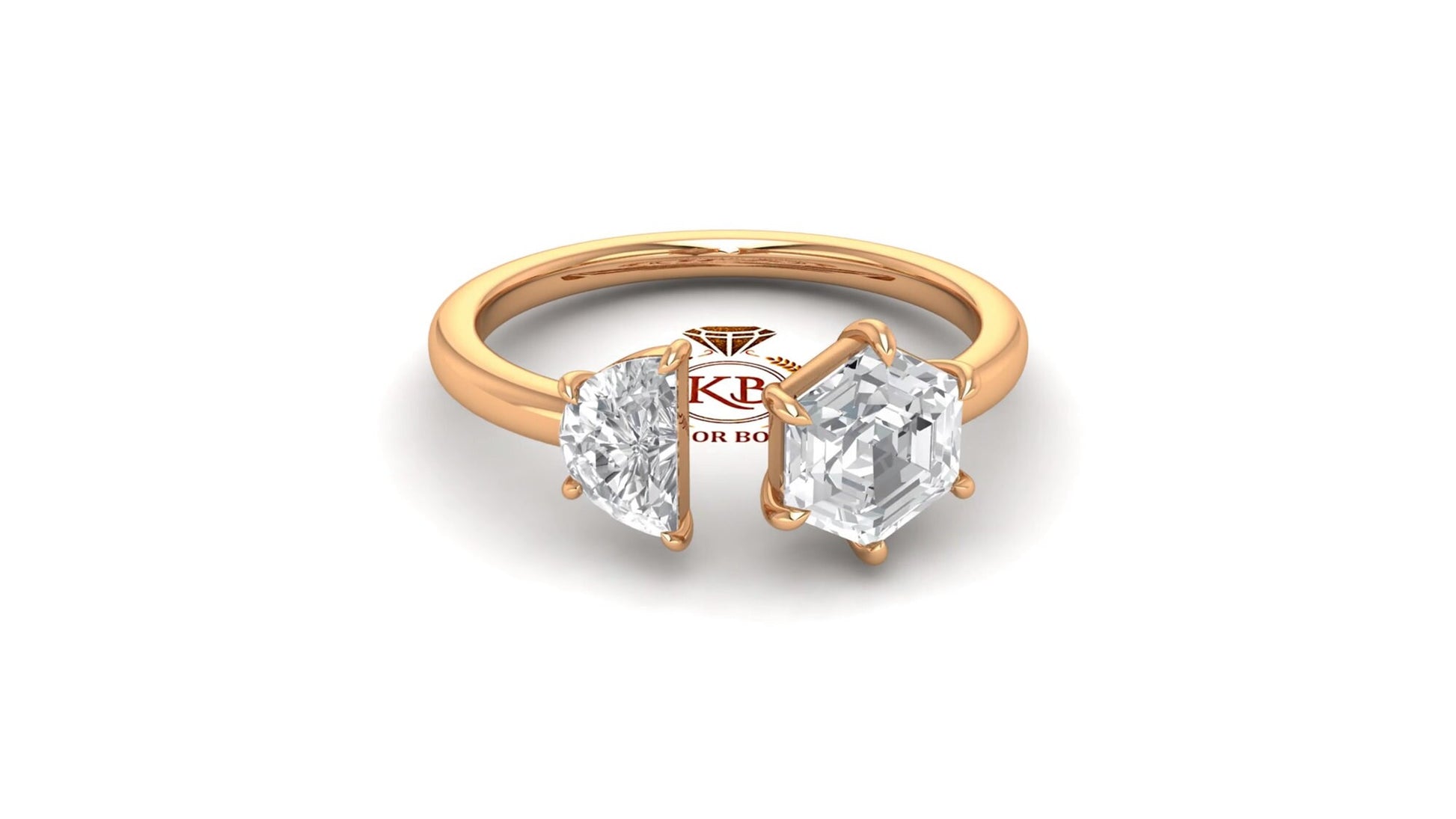 Got questions or concerns? Just send us a message — we're here to help!Half moon & Hexagon Moissanite Toi Et Moi two stone Engagement ring, promise proposal ring, mother child ring, gift for wife mother women
