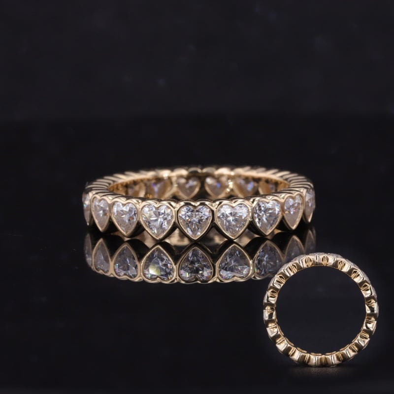 Got questions or concerns? Just send us a message — we're here to help!Heart Cut Bezel Set Moissanite Half\Full Eternity Wedding Band, Eternity ring, Bridal stackable, Statement ring, Anniversary gift for wife