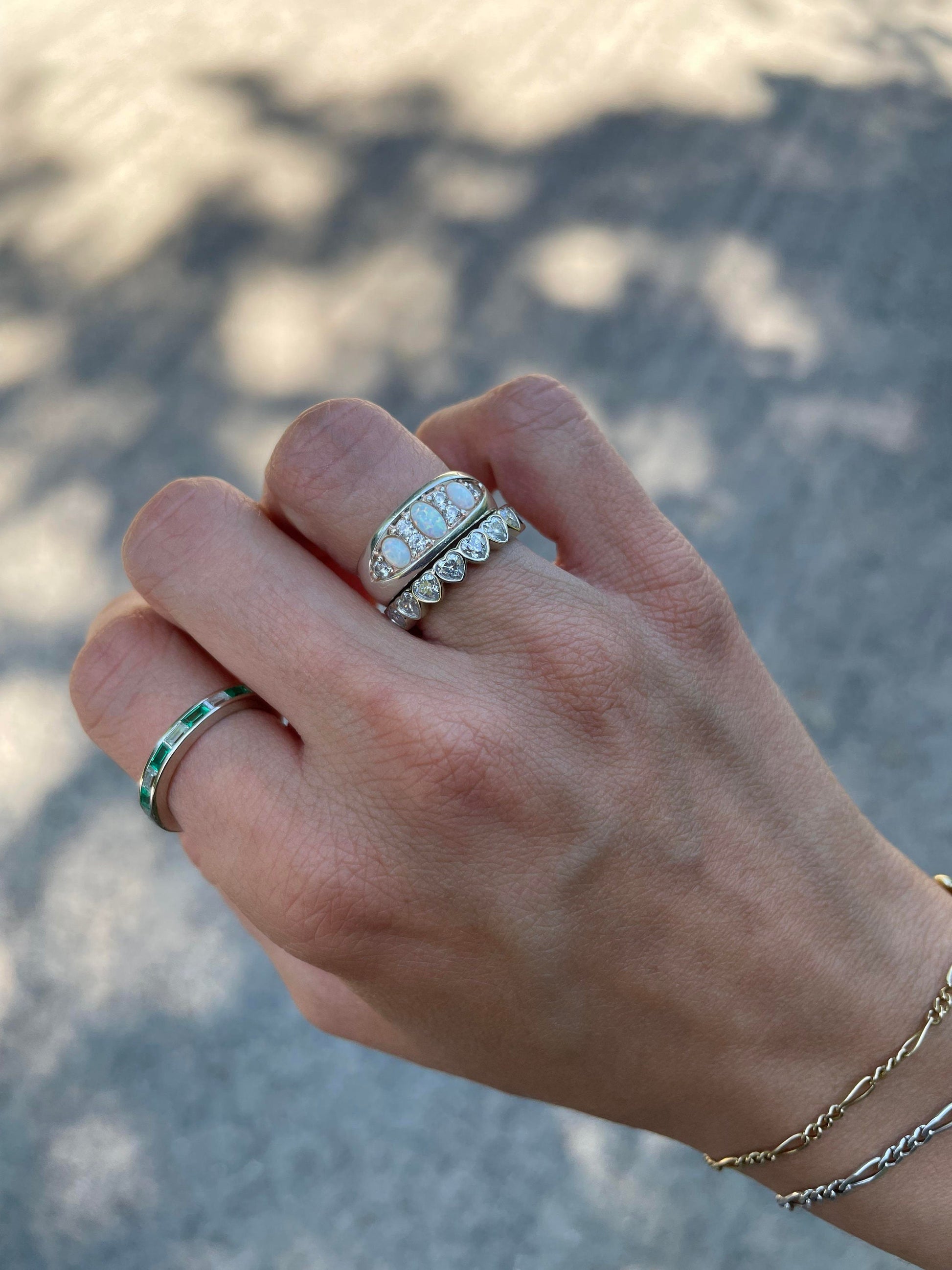 green moissanite ring, solitaire ring, and some festival jewelry like Easter gifts,