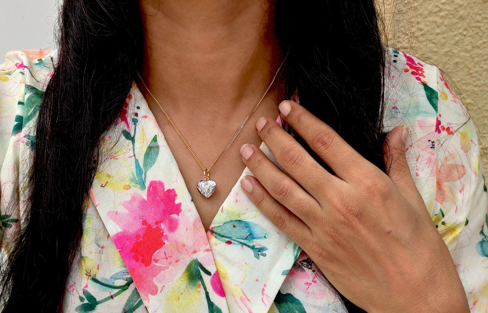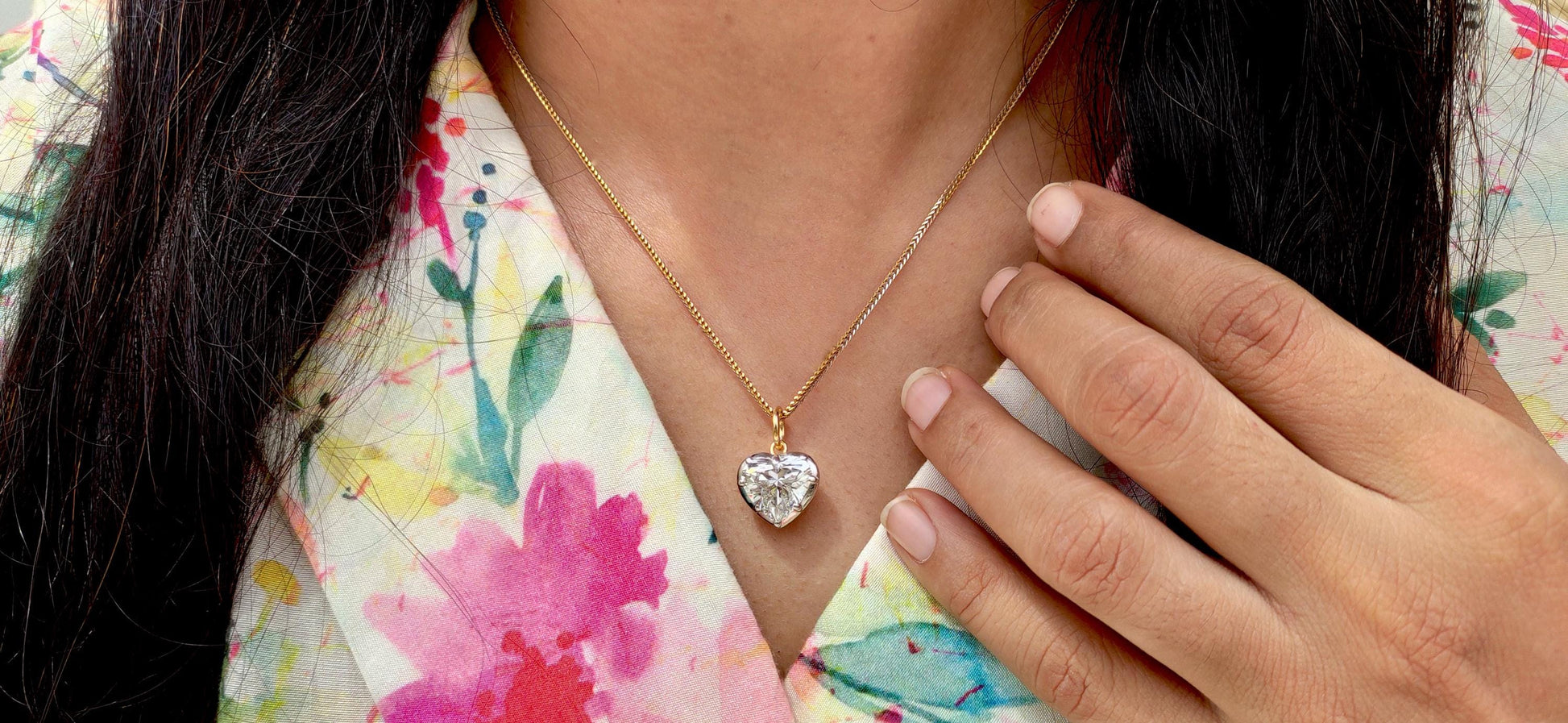 Heart Cut Moissanite Collet set Georgian cut down button back set Pendant without chain