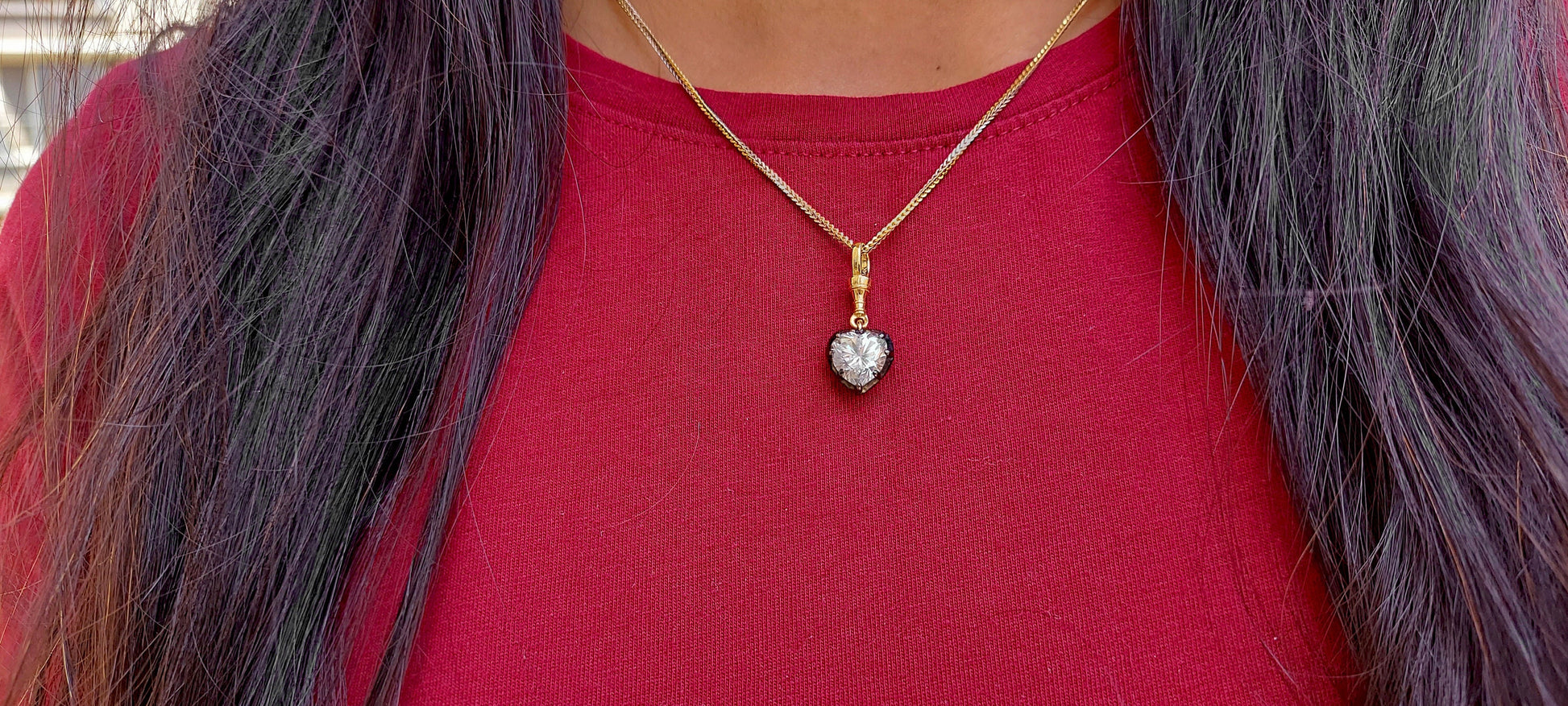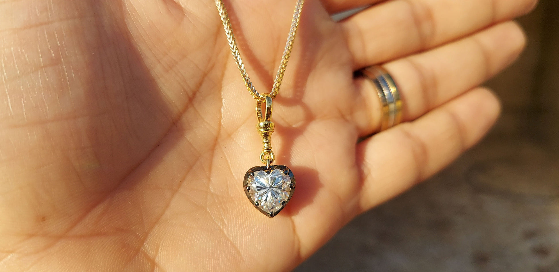Got questions or concerns? Just send us a message — we're here to help!Heart Cut Moissanite Collet set Georgian cut down set Blackened gold Swivel Clasp Pendant, without chain, available in 5mm, 6mm, 7mm, 8mm, 9mm