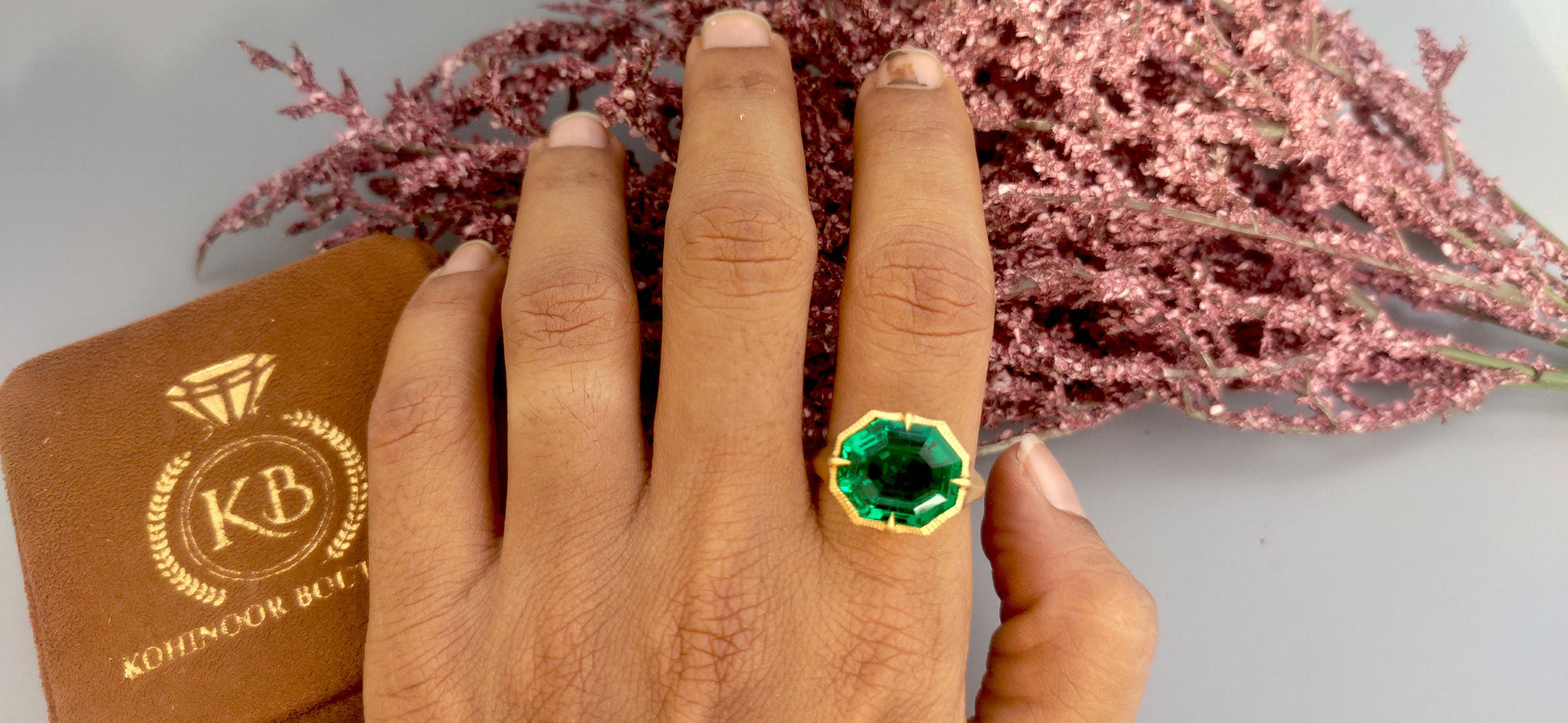Lab Emerald Georgian cut down Compass prongs set Knife edge Signet Solitaire ring in matt\Glossy finish, Ring for her\Women