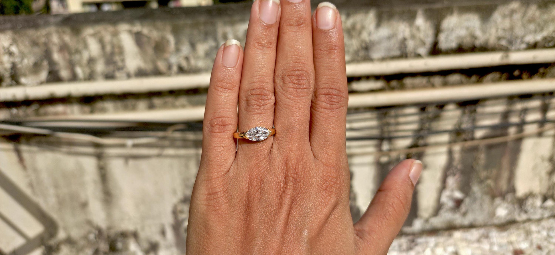 Marquise moissanite half bezel low profile set ring, ring for her, ring for women, gift for women
