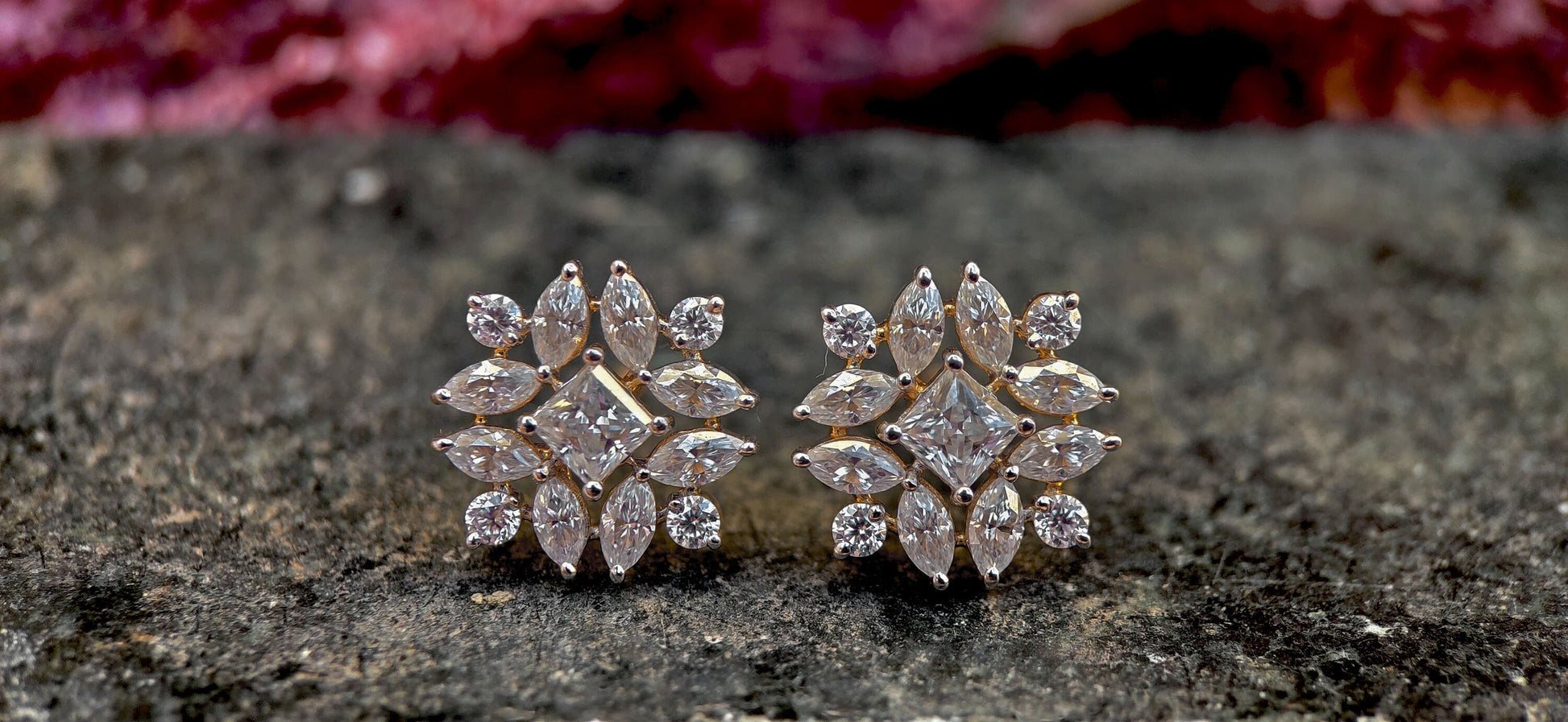 Marquise, Princess and Round Lab grown cluster studs, Statement earrings for her, Earrings studs for women, Party wear Wedding Earrings
