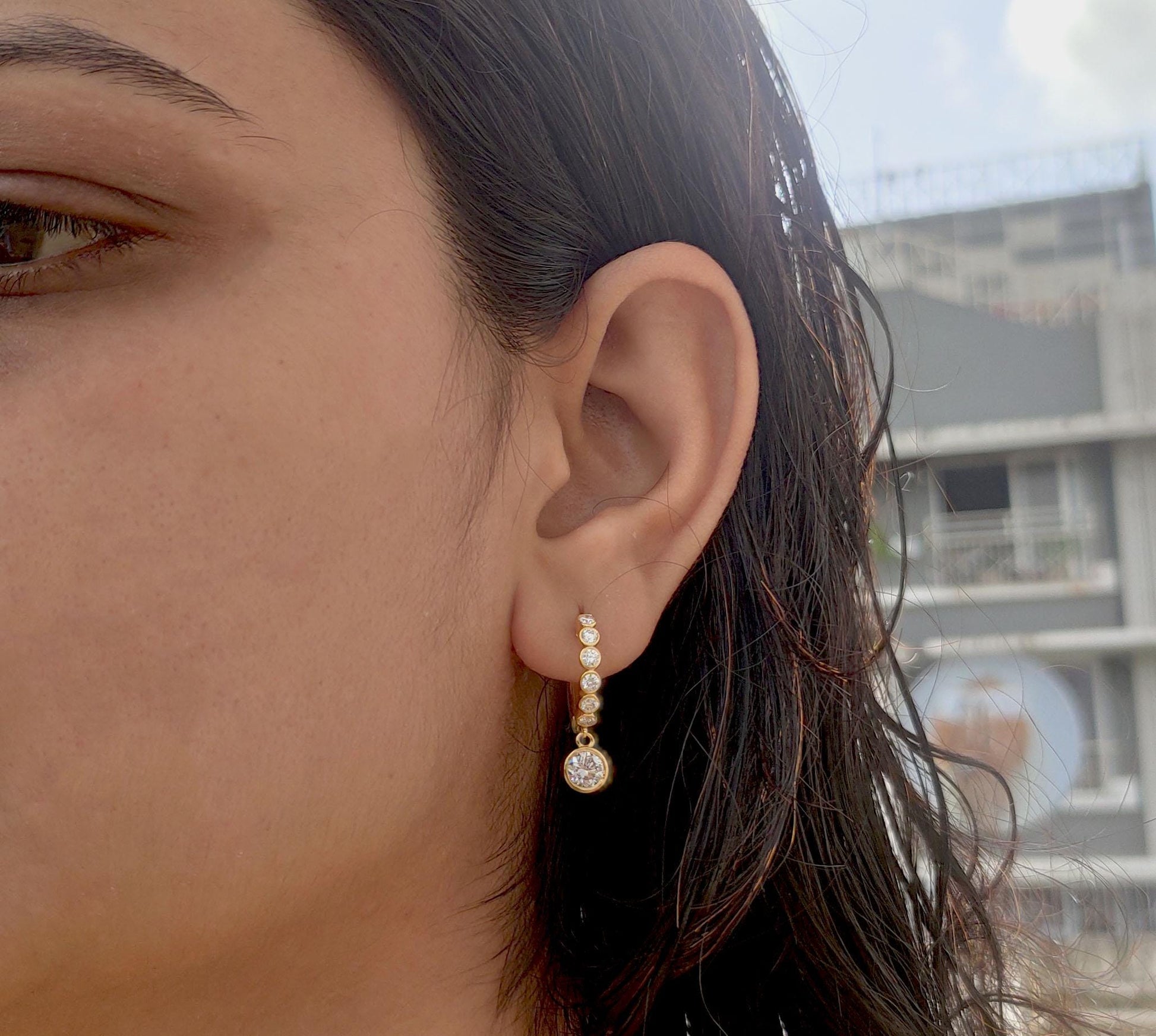 Moissanite bezel drop huggie hoops earrings for women, everyday earrings, Push back\Earrings, wedding huggie, gift for women