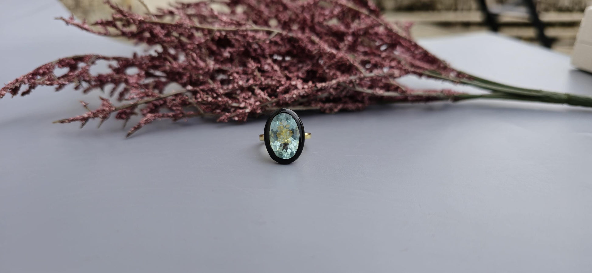 Natural Aquamarine ring with black enamel, Ring for her, party wear ring, statement ring, right hand ring, gift for mother, ring for her