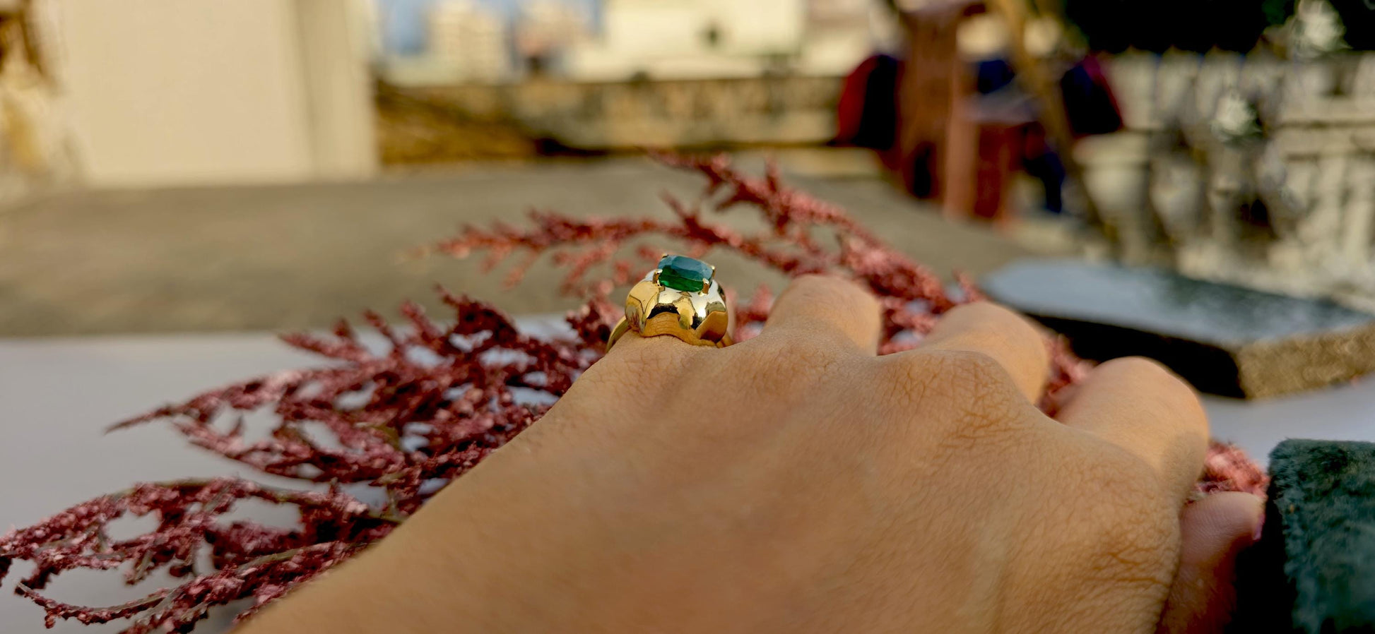 Natural Emerald Signet Solitaire ring in , Ring for her\Women, statement ring, pinky finger ring, right hand ring, with IGI certificate