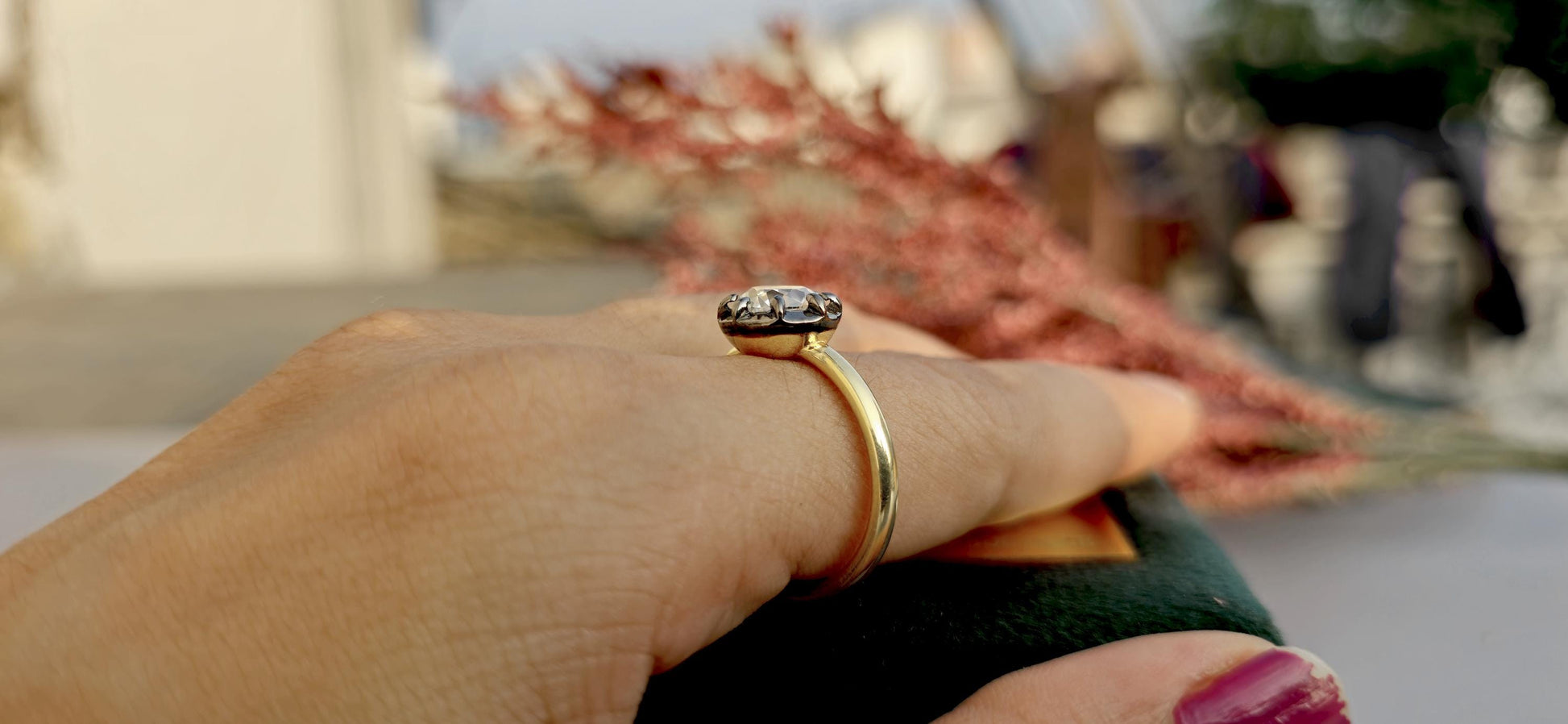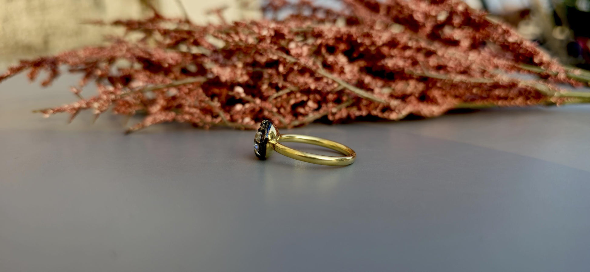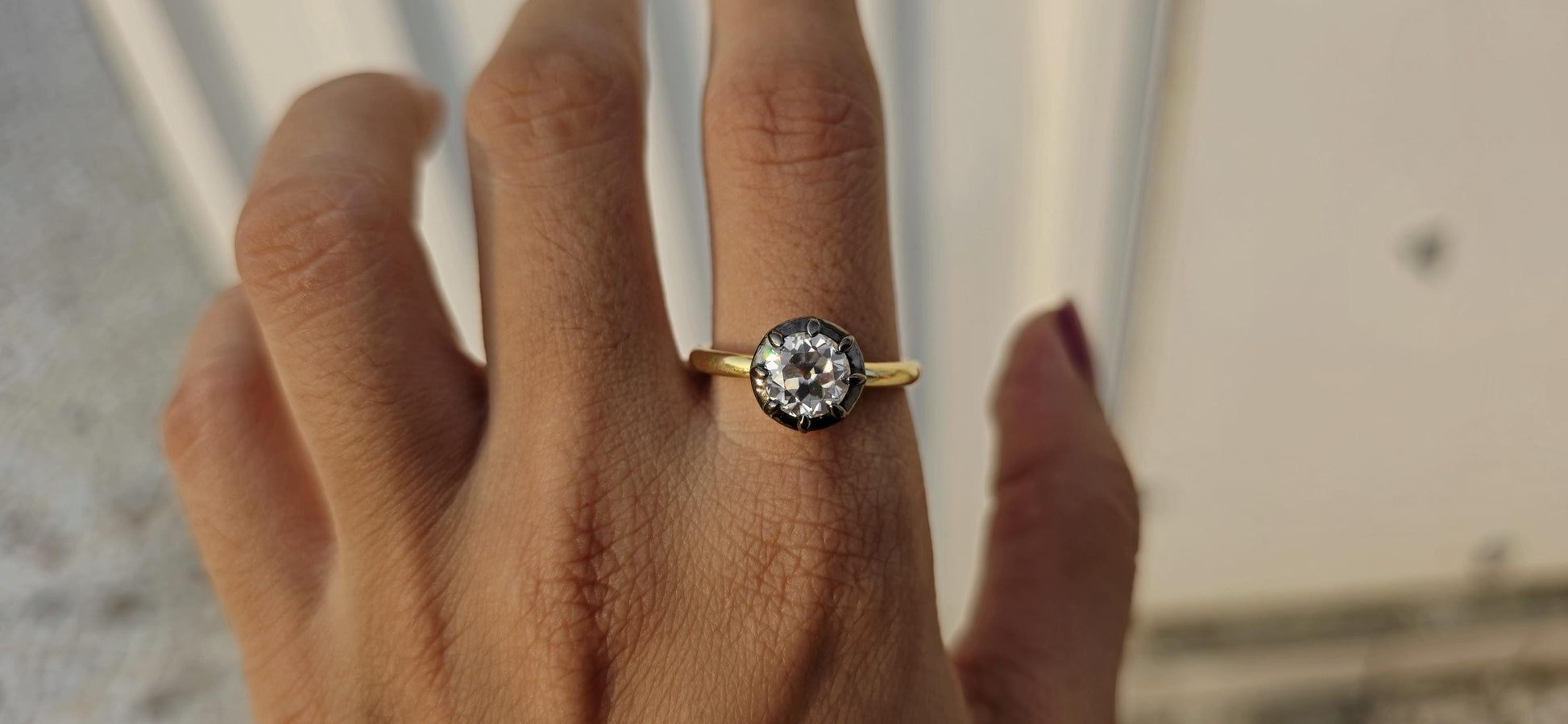 OEC Old European Cut Round Button Back Georgian Cut Down Set Moissanite Solitaire Engagement ring, ring for women, ring for her