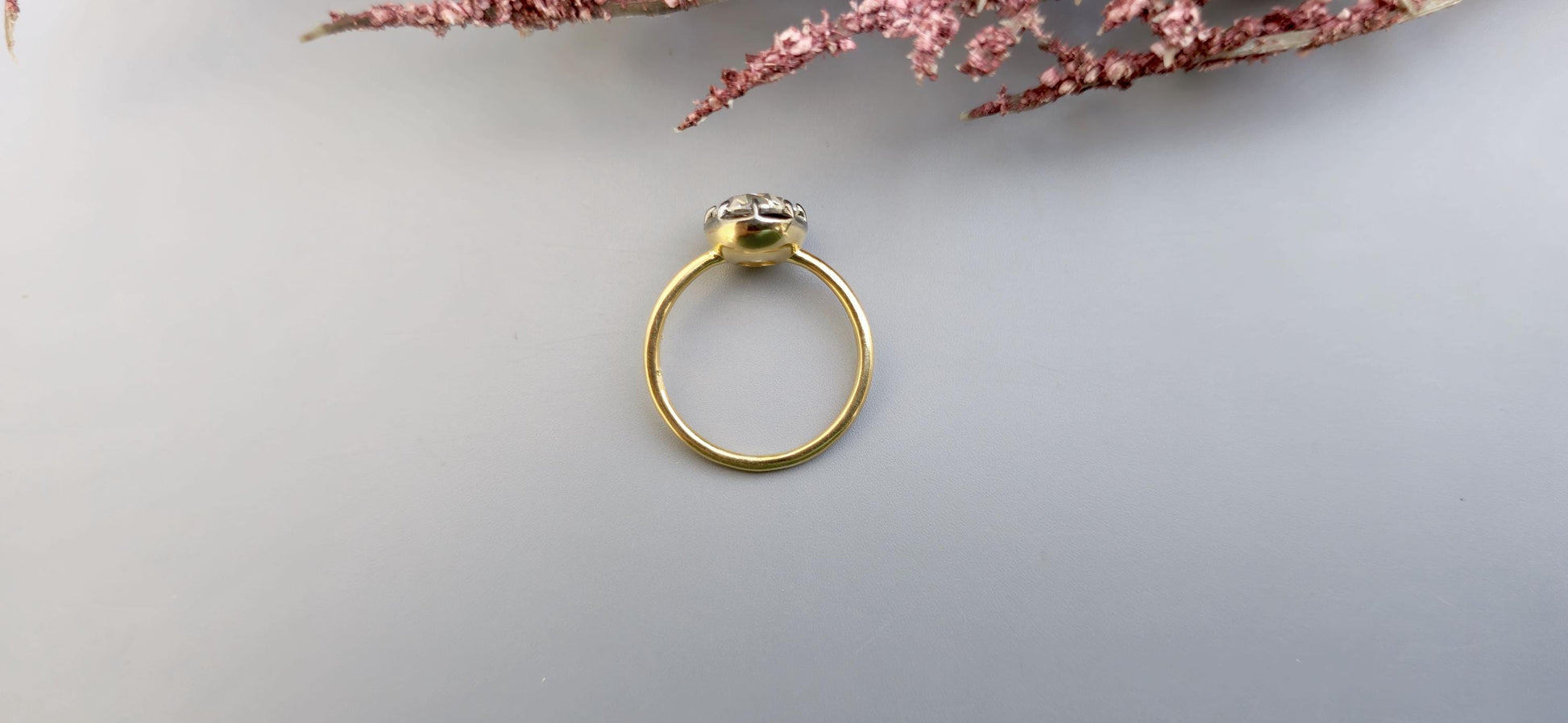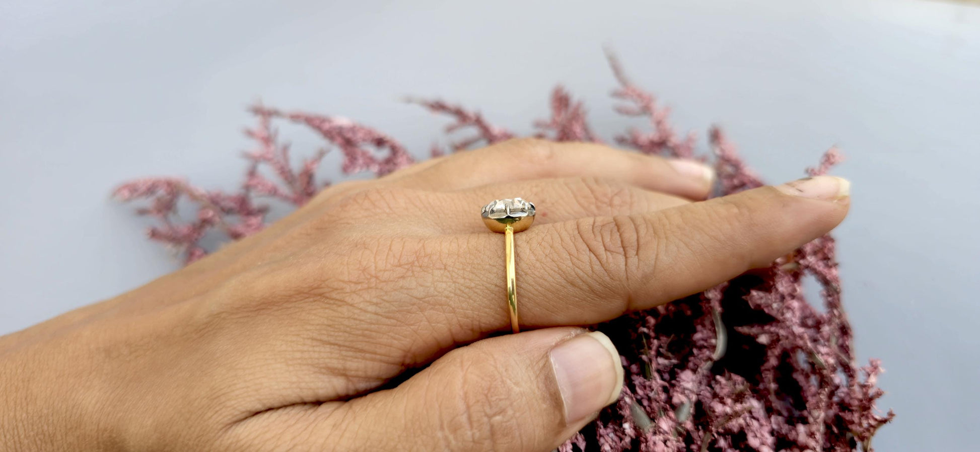 Old European Cut OEC Round Button Back Georgian Cut Down Set blackened gold Moissanite Solitaire Engagement ring