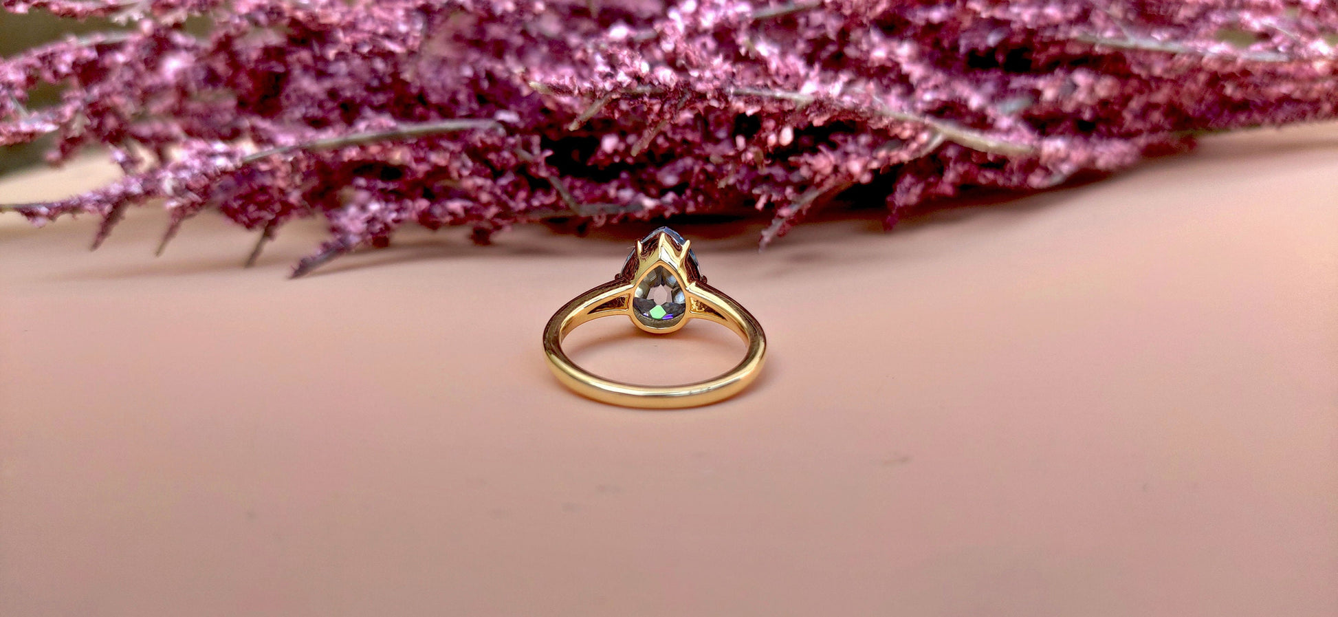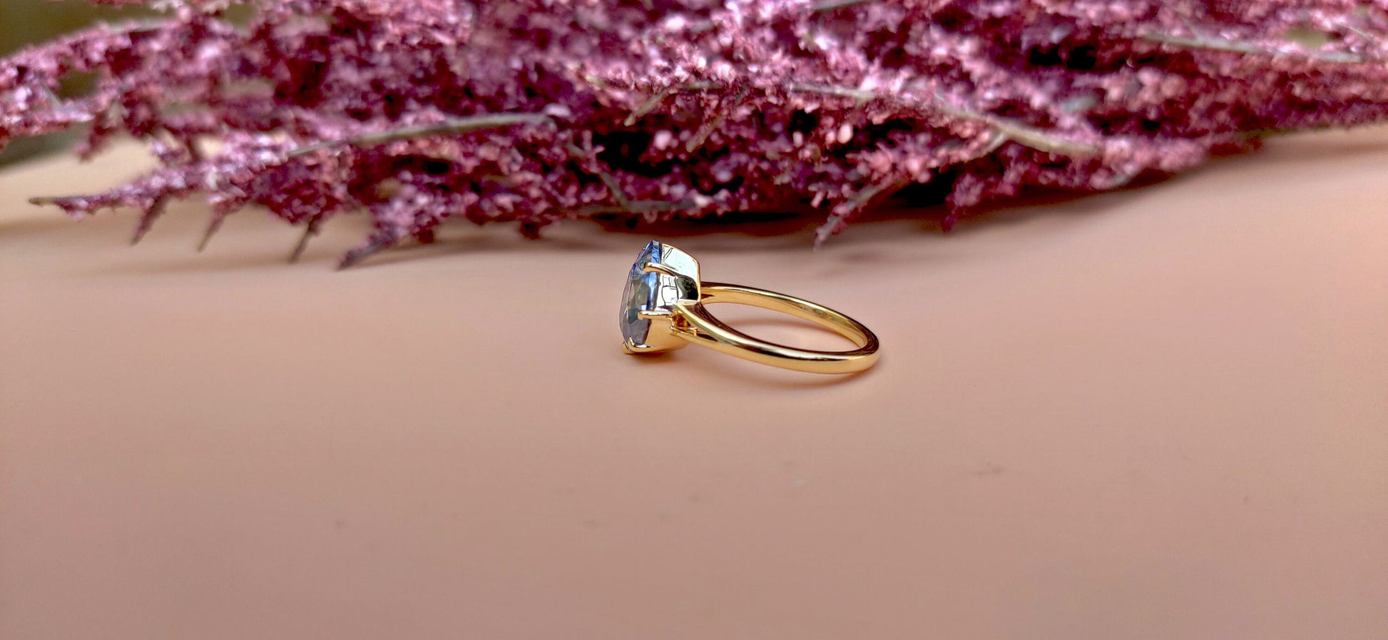 Old Mine Antique OMC Blue Pear Cut Moissanite Solitaire Engagement Ring, ring for her, gift for her Georgian era ring, Marie-Antoinette ring