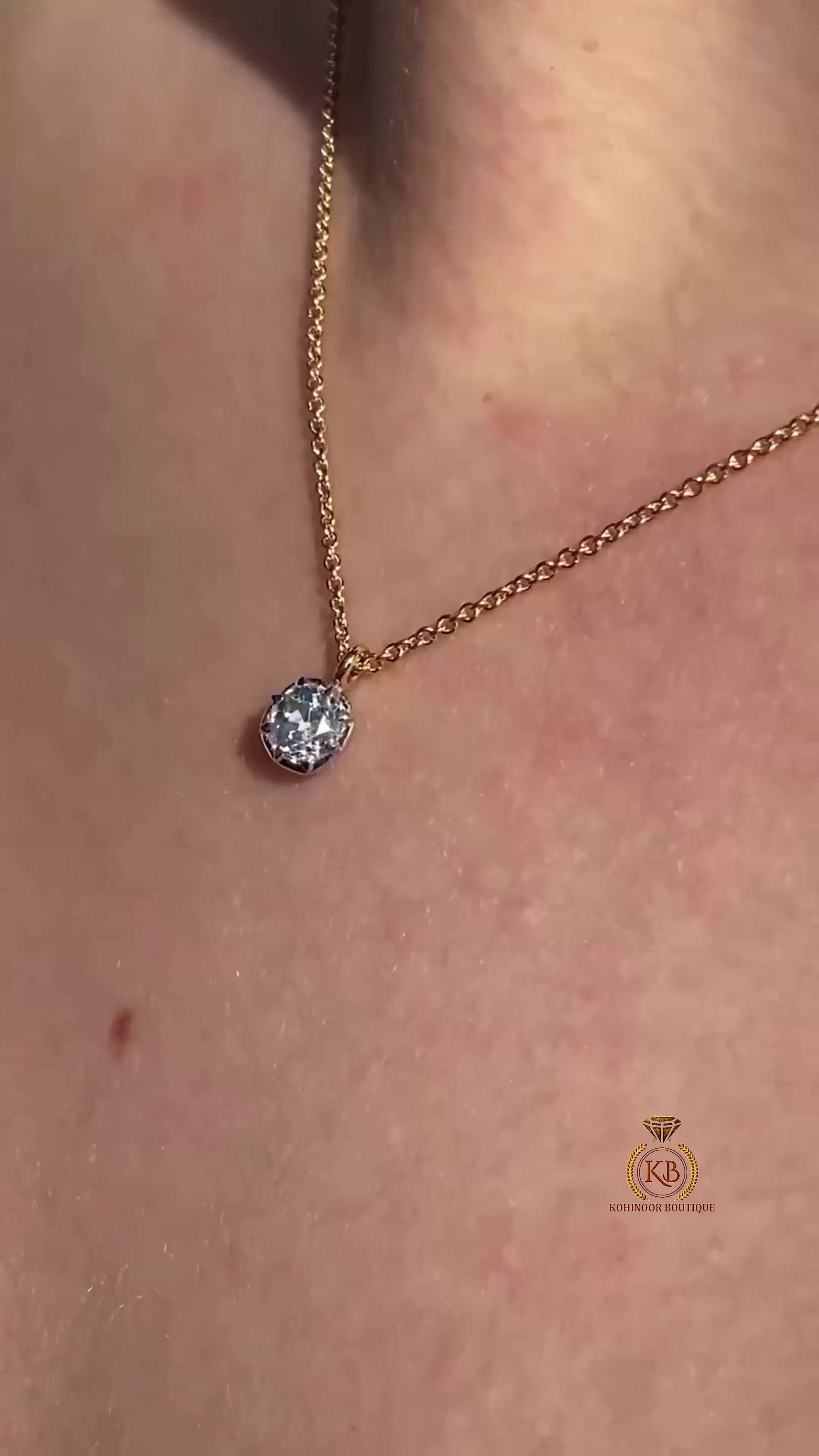 Old Mine Cut Cushion OMC Georgian Cut Down Button Back Set Moissanite Pendant, Vintage Antique Pendant ,Wedding Pendant, without chain
