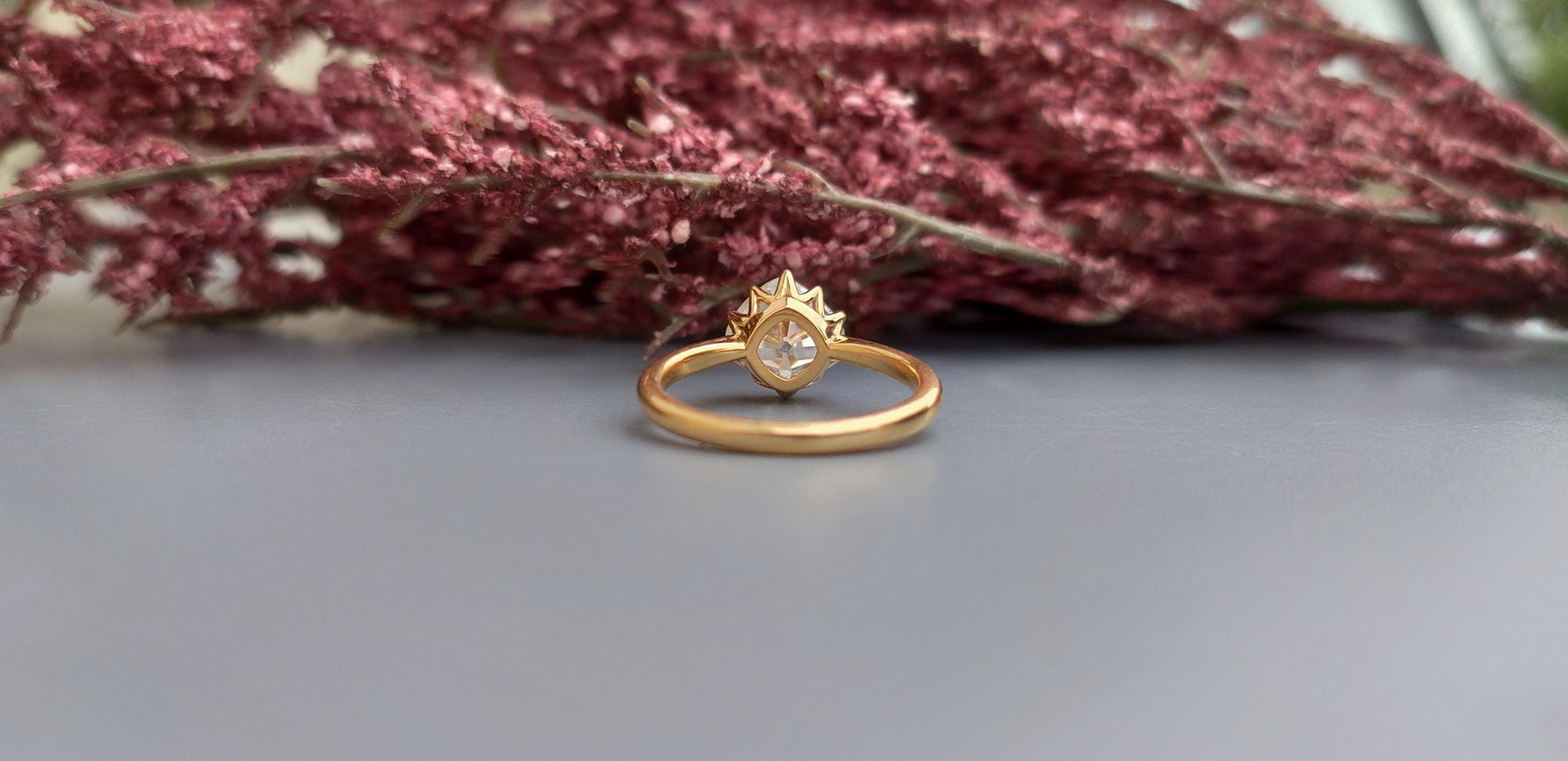 Old Mine Cut OMC Kite set Cushion Moissanite Solitaire Engagement Ring, Ring for her, Vintage ring for women, right hand ring