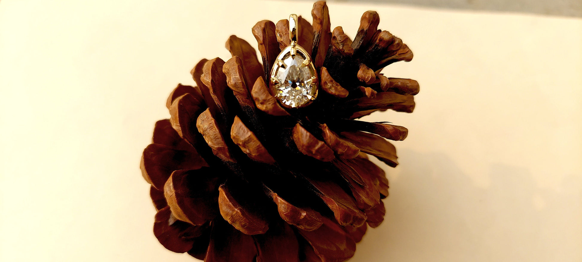 Got questions or concerns? Just send us a message — we're here to help!Old Mine Pear cut OMC, Antique Pear Georgian cut down set Solitaire Moissanite Pendant without chain, Pendant for women, gift for mother