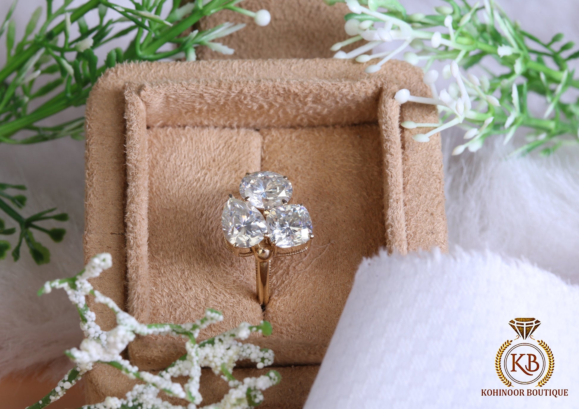 Oval Pear and Cushion Trilogy moissanite 3 stone Engagement Ring, Ring for her, Gift for Her, Right hand ring
